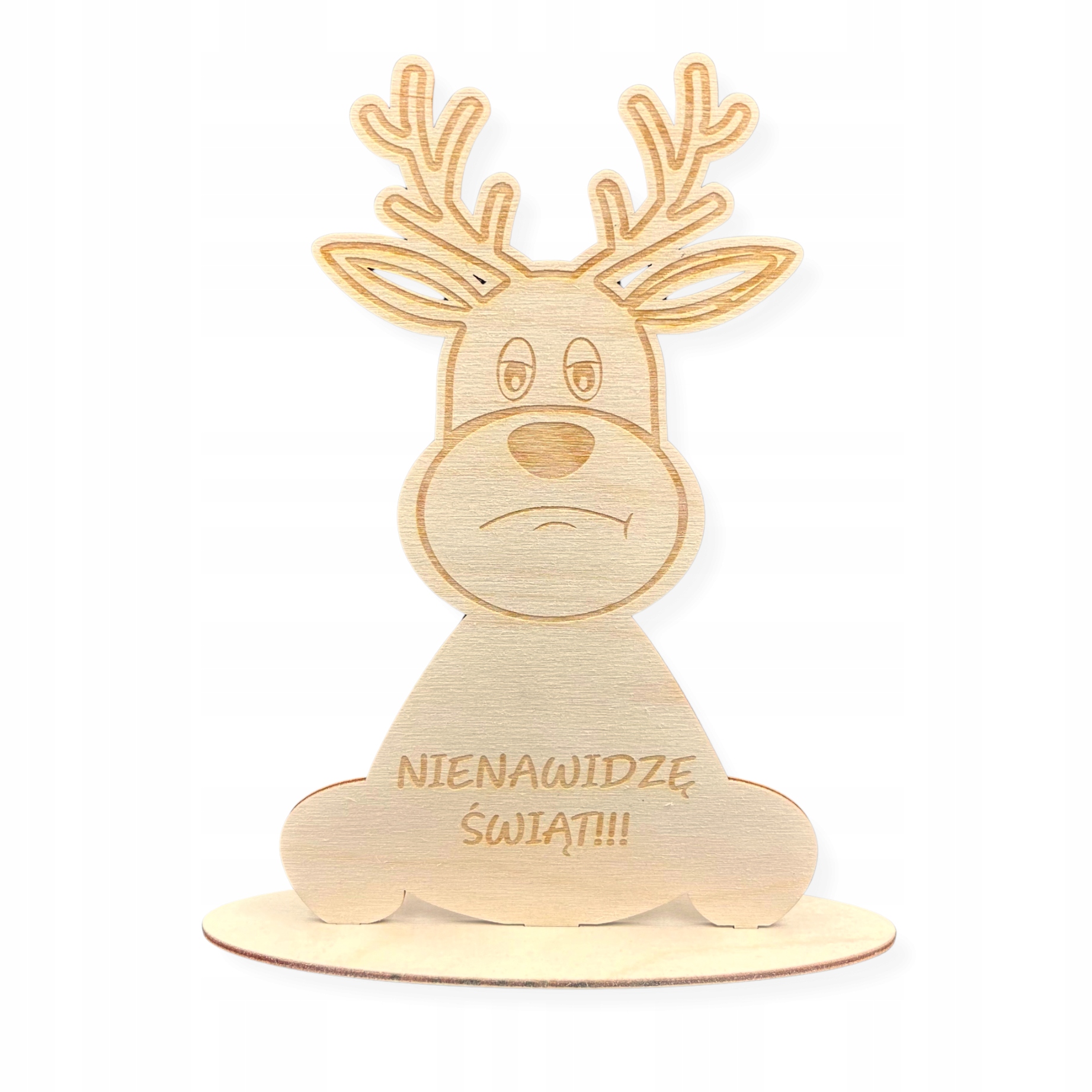 ДЕРЕВ'ЯНИЙ ОЛЕНЬ Я НЕНАВИЖУ РІЗДВЯНИЙ ОЛЕНЬ З ГРАВІЮВАННЯМ СТОЯЧА ДЕКОРАЦІЯ 24 СМ