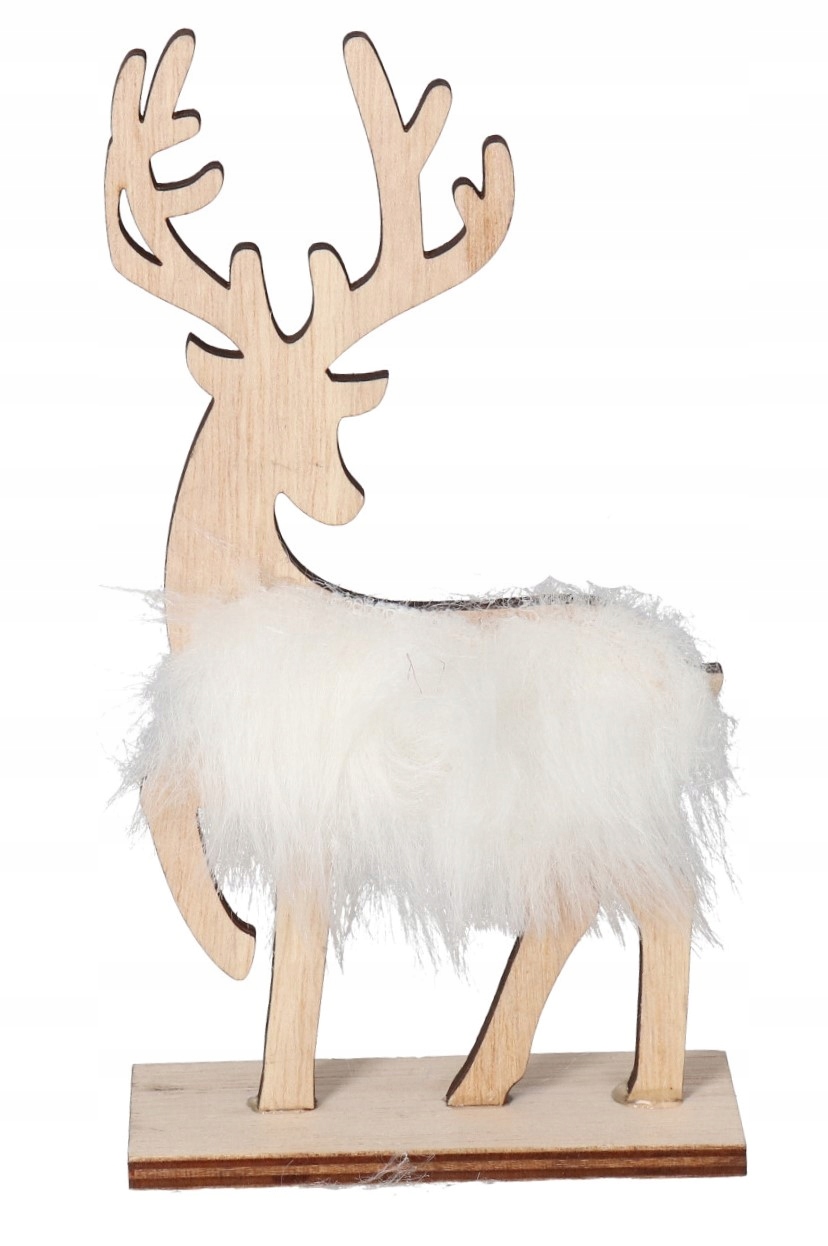 РІЗДВОВА ДЕКОРАЦІЯ ДЕРЕВ’ЯНА ФІГУРКА ОЛЕНЯ З ХУТРОМ