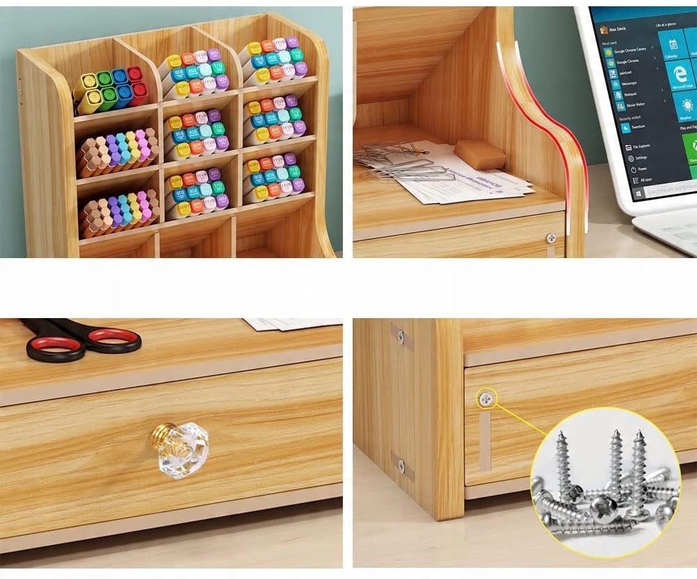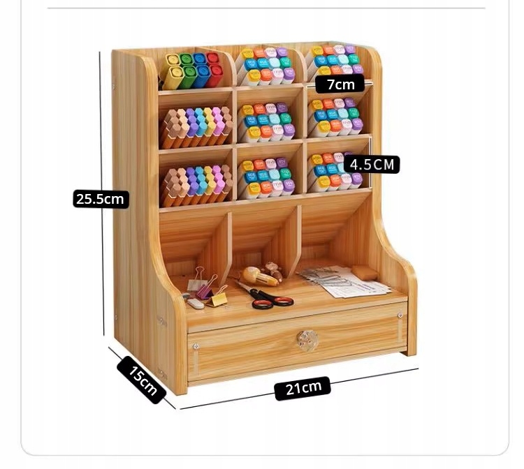 Дуже велика ємність: може вмістити сотні олівців, 9 розділів, щоб розділити різні кольори для легкого розпізнавання. Внизу є також висувна шухляда, в якій ви можете зберігати інші невеликі офісні товари, такі як ножиці, паперові кліпи, маркери, клей та багато іншого.