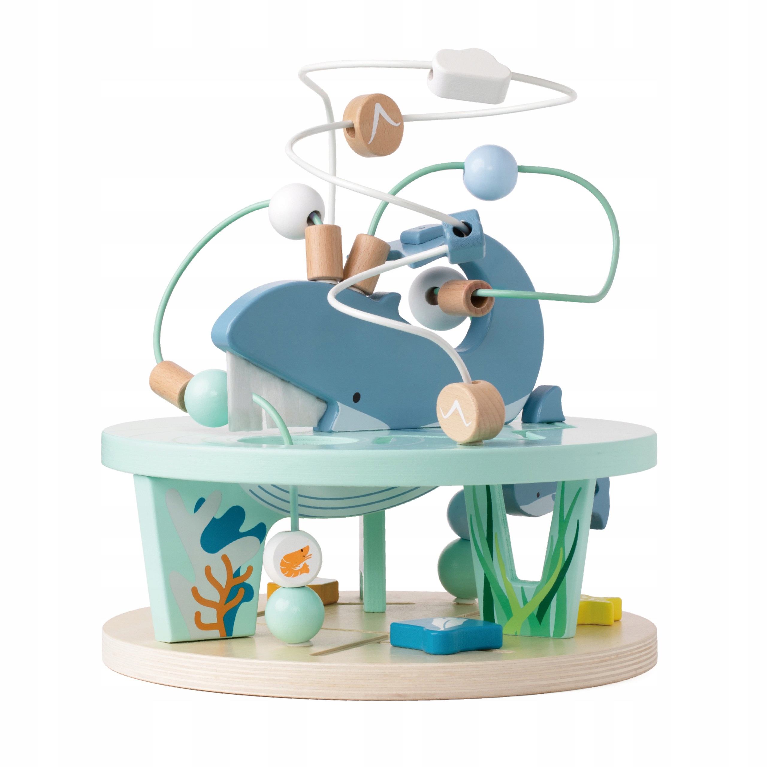 Лабіринт переплетення Морське життя від бренду класичного світу - прекрасна сучасна пастельна іграшка, що підтримує моторні навички дитини, в той самий час, що представляє прекрасний світ у думках. Діти можуть рухати бульбашки та кульки у формі птахів навколо кита, над або під морем. Невеликий кит пливе навколо матері і тече між водоростями, рибою тощо. Дерев’яне переплетення - це чудова сенсорна іграшка , яка дозволяє дитині тренувати ефективність ручок .