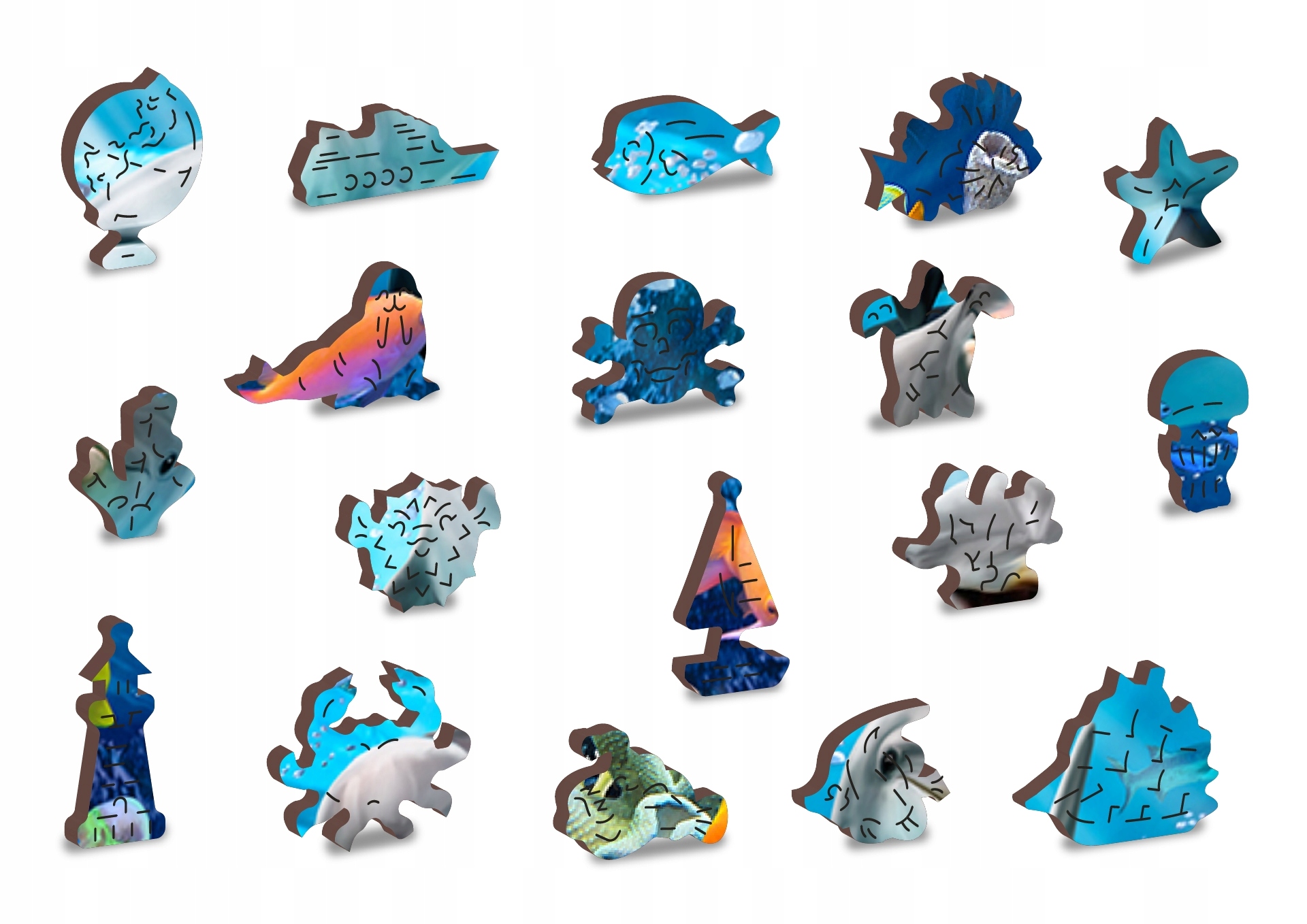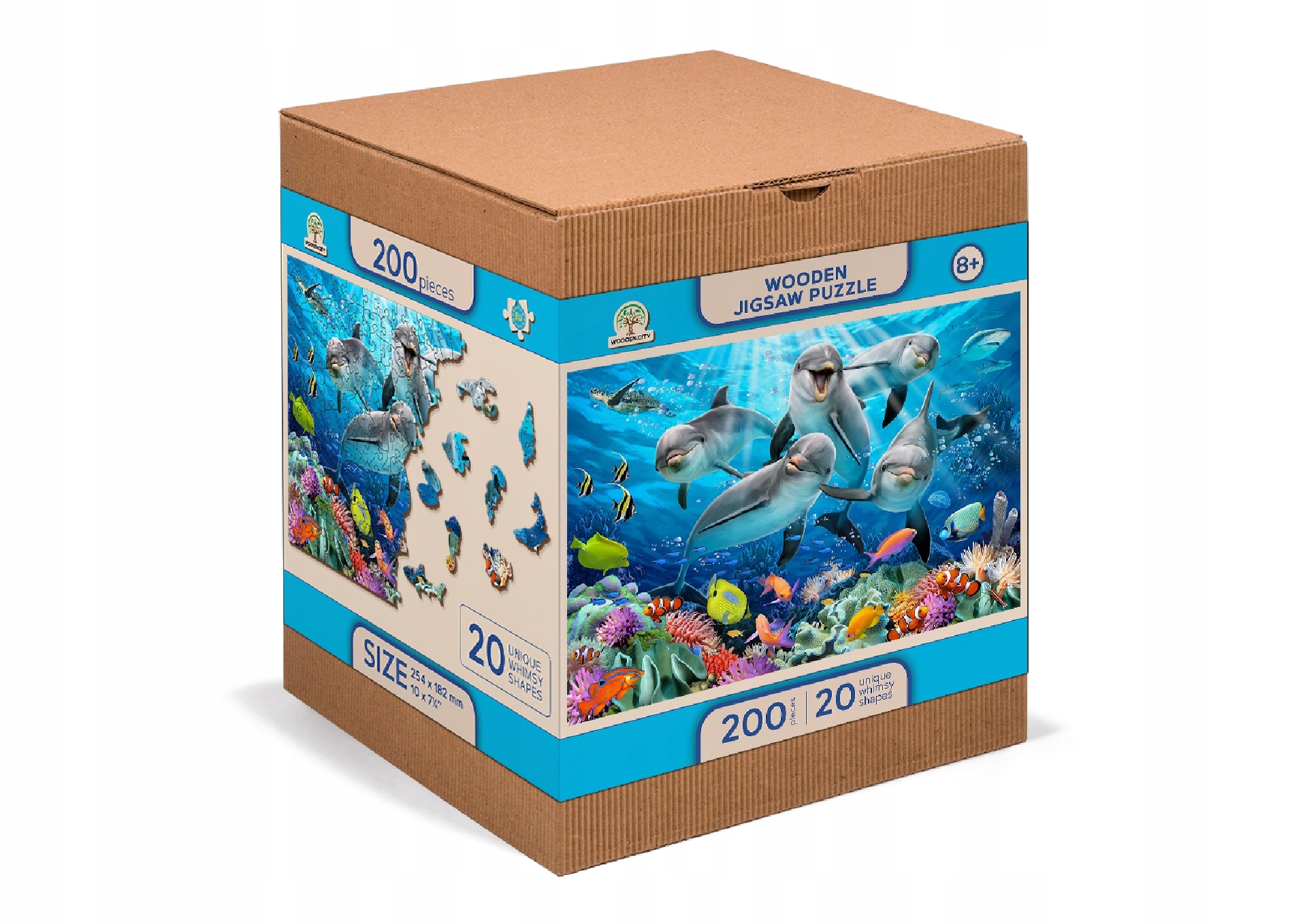 Щасливі дельфіни - ДВОСТОРОННИЙ ДЕРЕВ'ЯНИЙ ПАЗЛ З ФІГУРКАМИ