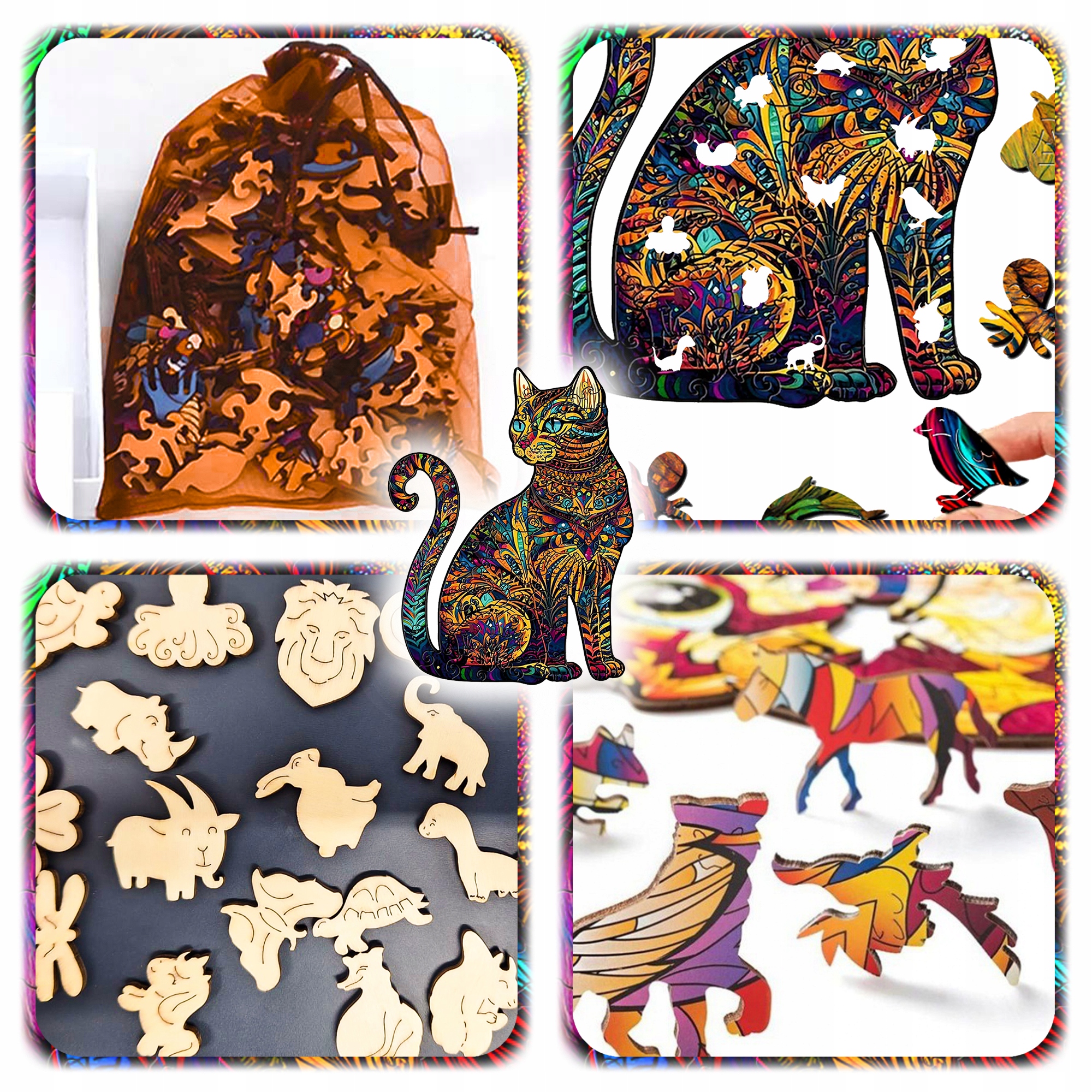 ДЕРЕВ'ЯНИЙ ПАЗЛ ДВОСТОРОННИЙ А4 КІТ КОШЕНЯ 159 ЕЛЕМЕНТІВ ПОДАРУНОК ДОРОСЛИМ ДІТЯМ