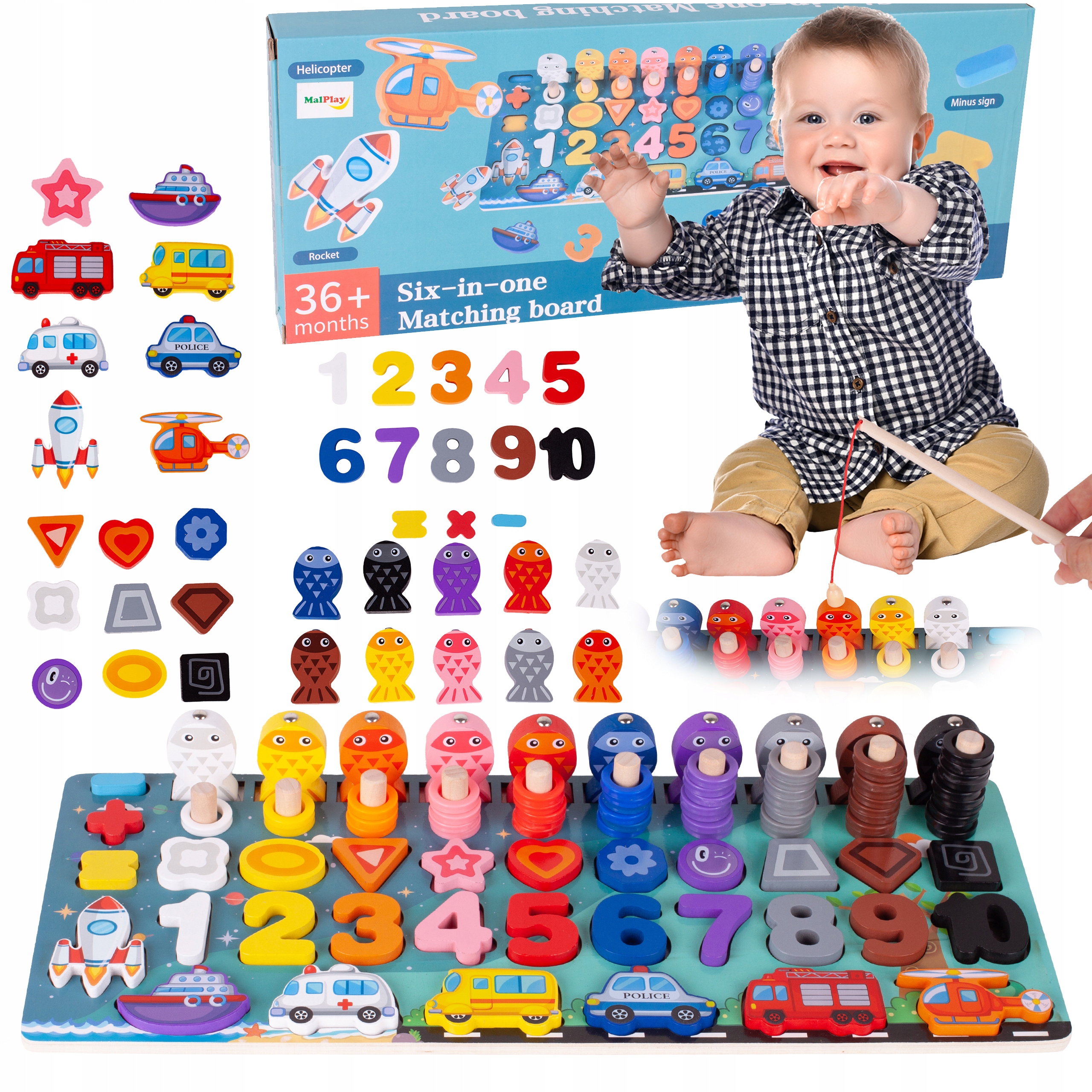 ДЕРЕВ'ЯНИЙ ПАЗЛ МОНТЕСОРІЯ НАВЧАЄМОСЯ РАХУВАТИ 6IN1