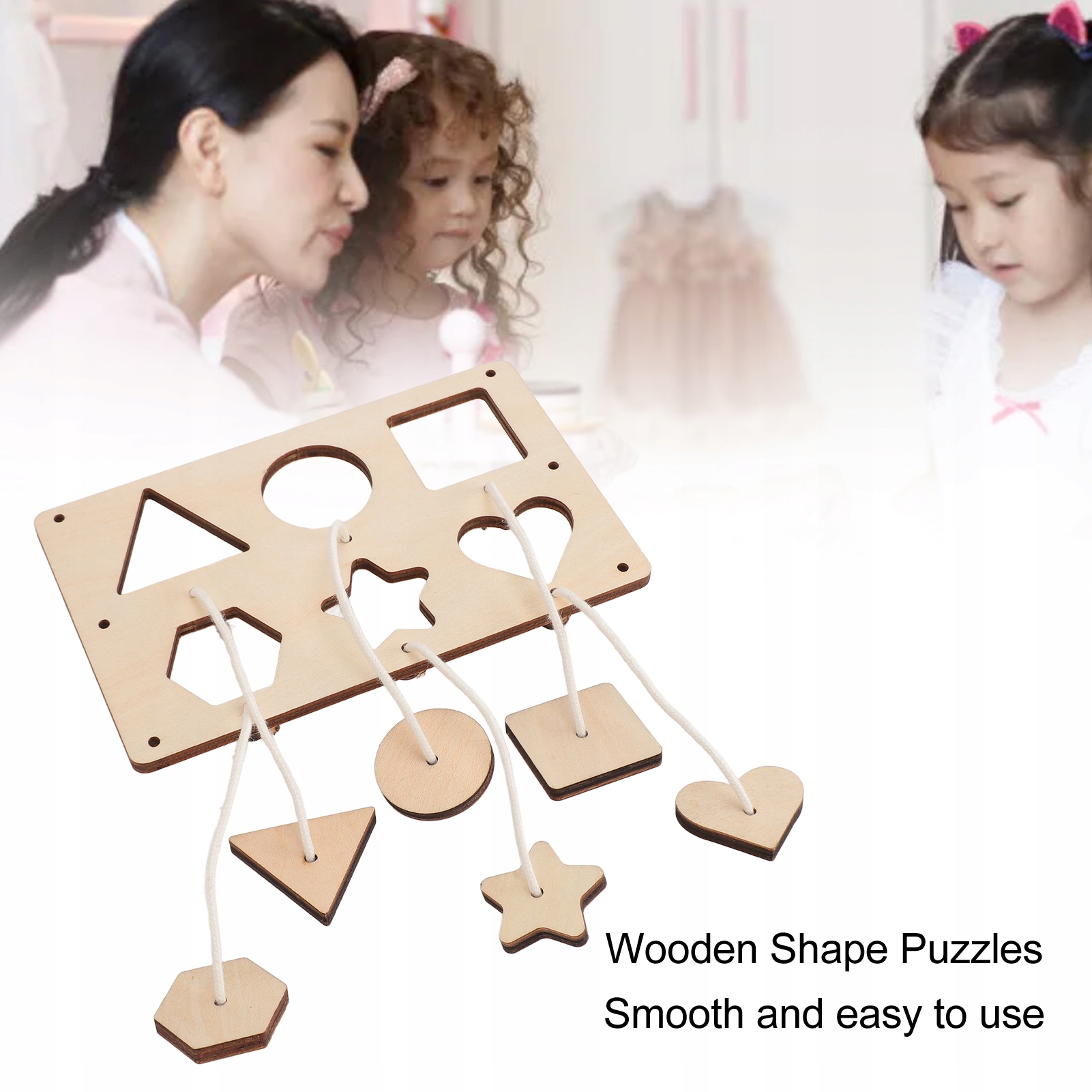 1. Дерев’яний матеріал: дерев’яні головоломки для вивчення форм, виготовлені з композитних дощок липи, гладкі та зручні у використанні, що забезпечує безпечну гру.
