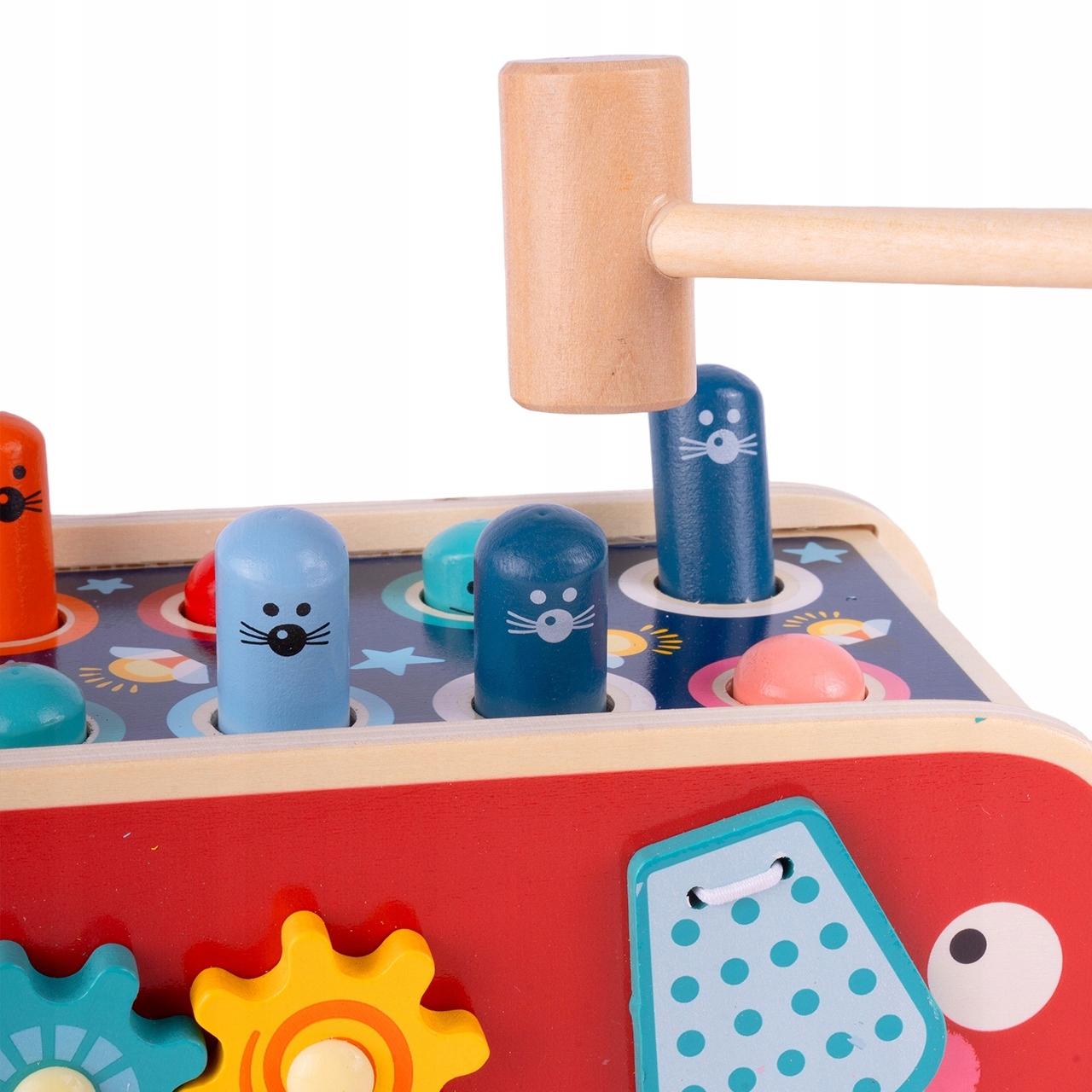З цією іграшкою ваша дитина не тільки весело проведе час, а й розвине ручні навички. Доджбол (15,5 х 4,5 см) з двома молотками дозволяє грати разом і розвивати моторику. Іграшка також оснащена обертовими шестернями, які показують причинно-наслідкові зв'язки та сприяють розвитку логічного мислення.