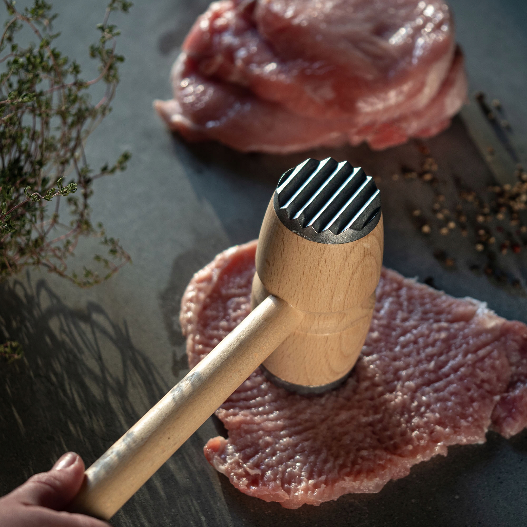 - Дерев'яна конструкція та ручка - завдяки їм, розм’якшувач м’яса не вислизає з рук під час використання, тому він дуже безпечний.