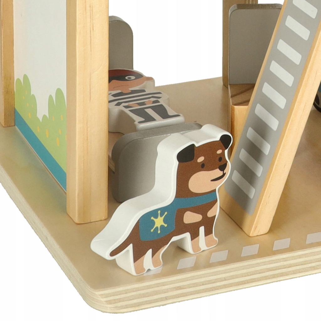 Набір створений для маленьких любителів пригод, подарує години чудових розваг і розвиває їхню уяву. Поліцейська дільниця має три рівні, що дає вам ще більше простору для розігрування захоплюючих сценаріїв. На першому поверсі є гараж, який ідеально підходить для паркування автомобіля поліції після операції. Середній поверх — це кабінет начальника поліції, де можна проводити розслідування та звіти. На самому верху знаходиться посадковий майданчик для гелікоптера, готовий швидко відреагувати на будь-який виклик. Дерев'яна поліцейська станція — ідеальний набір, який розважає та навчає, розвиваючи ручні навички та творчі здібності дитини!