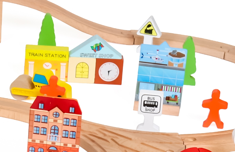 - ✳️ З’єднання інших іграшок: дерев’яний потяг можна з’єднати з іншими іграшками, такими як будівлі, машини чи персонажі, для створення пригод сцени.