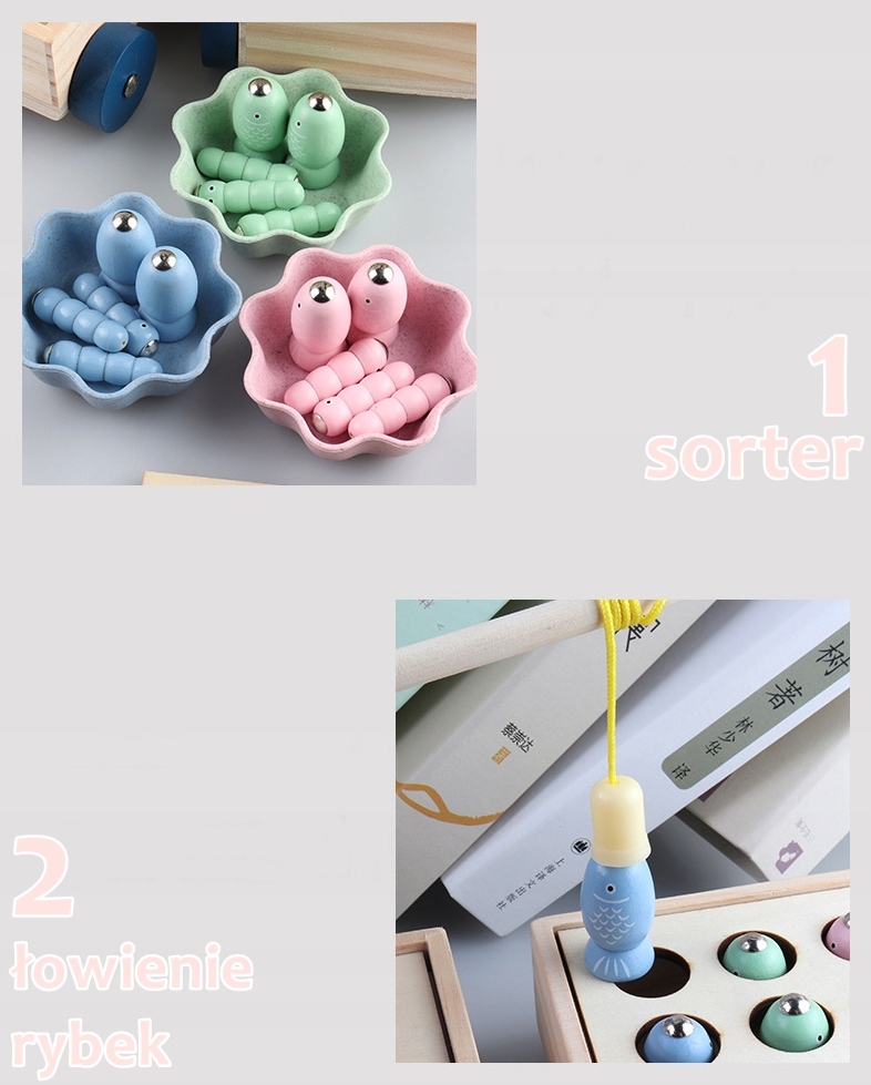 ⭐ РИБАЛКА + СОРТЕР⭐ традиційна гра в ловлю риби на магнітну вудку порадує кожного маленького рибалку. Покладіть рибу та черв’яків у вагони магнітами догори та спробуйте зловити їх вудкою з магнітом.