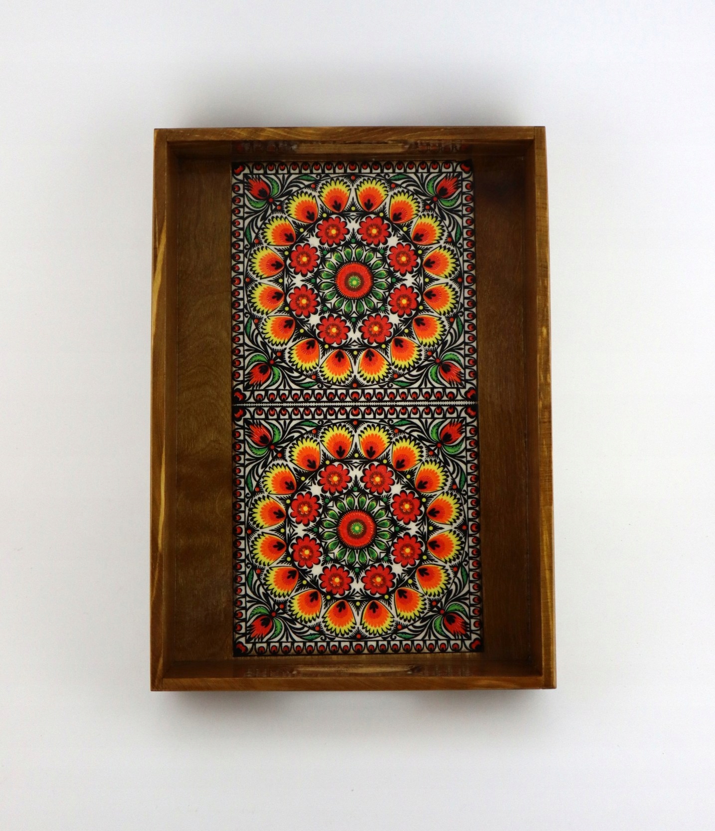 Цей дерев'яний піднос - не тільки функціональний елемент, але й гарна прикраса вашого дому. Додайте нотку фольклору та традицій у свій простір за допомогою нашої унікальної таці. Насолоджуйтеся практичністю та естетикою в одному.