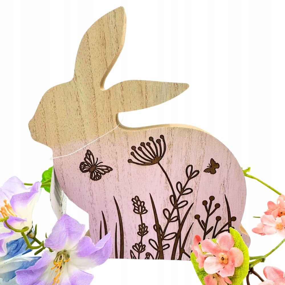 Дерев’яний рожевий зайчик прикраси великодні прикраси