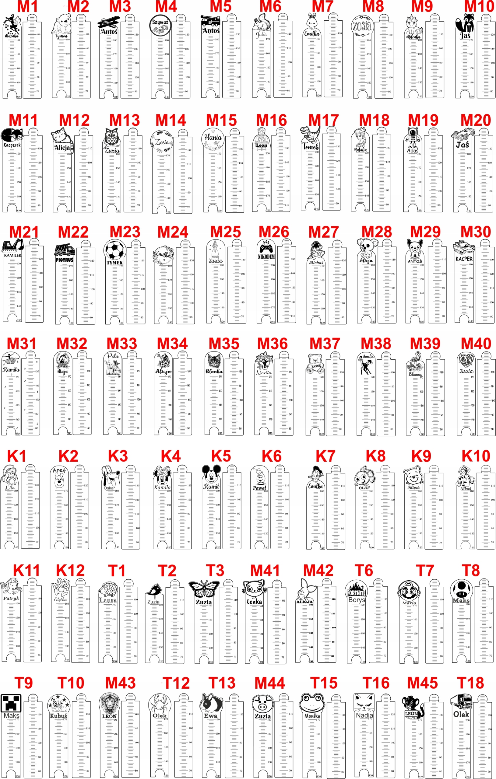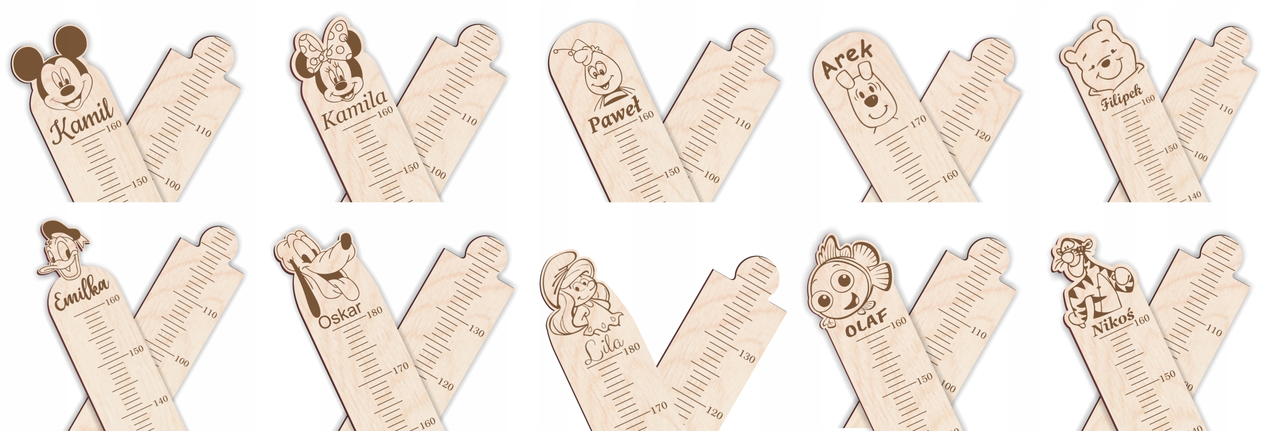 Дерев'яна мірка дозволяє не тільки стежити за ростом ваших дітей, але й також красива і атмосферна прикраса дитячої кімнати. Великий вибір візерунків допоможе задовольнити вибагливі дитячі смаки.
