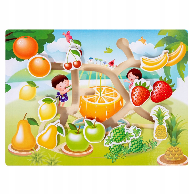 На дерев'яній дошці ви знайдете 7 фруктових елементів у потрібне місце на дошці.