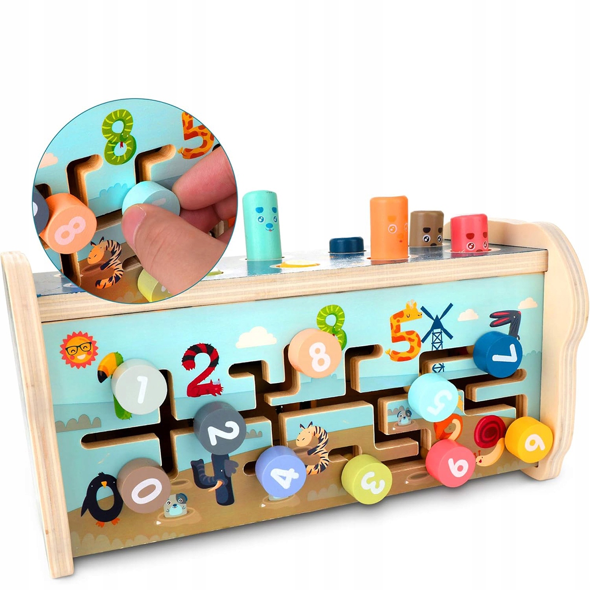 Іграшка-молоток Монтессорі для дітей 1-2 років. Дерев'яна дошка для забивання й тренування з ксилофоном, цифровим лабіринтом і лавою для забивання. Розвиваючий подарунок для дітей 1-3 років.