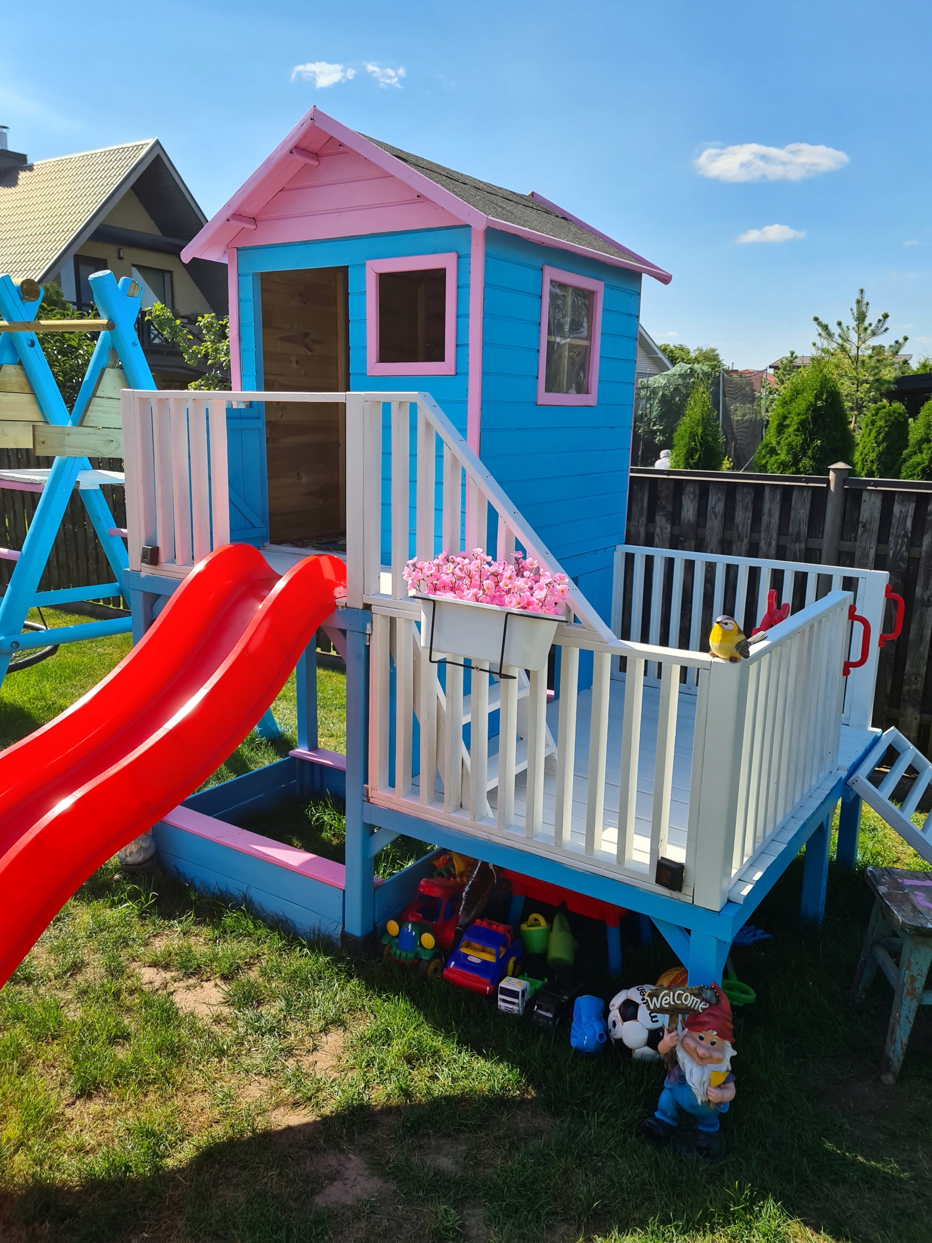 ⭐ У багаторівневій конструкції була пісочниця , в якій діти різного віку, навіть наймолодші, зможуть грати. Побудова піщаних замків - це ідеальна забава, яка приносить сенсорні переваги в розвитку дитини. Літо - будуть захищені від сонця, вони зможуть організувати зустрічі на терасі з однолітками.
