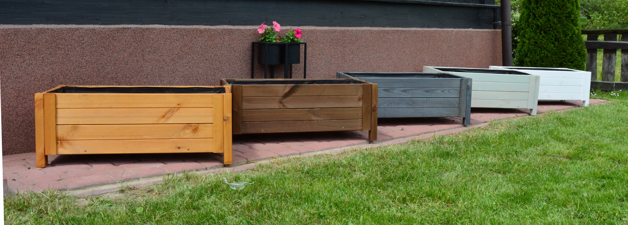 - Деревина пофарбована препаратом, який, окрім надання кольору, просочує та захищає горщик стійкий до погодних умов.< /li>