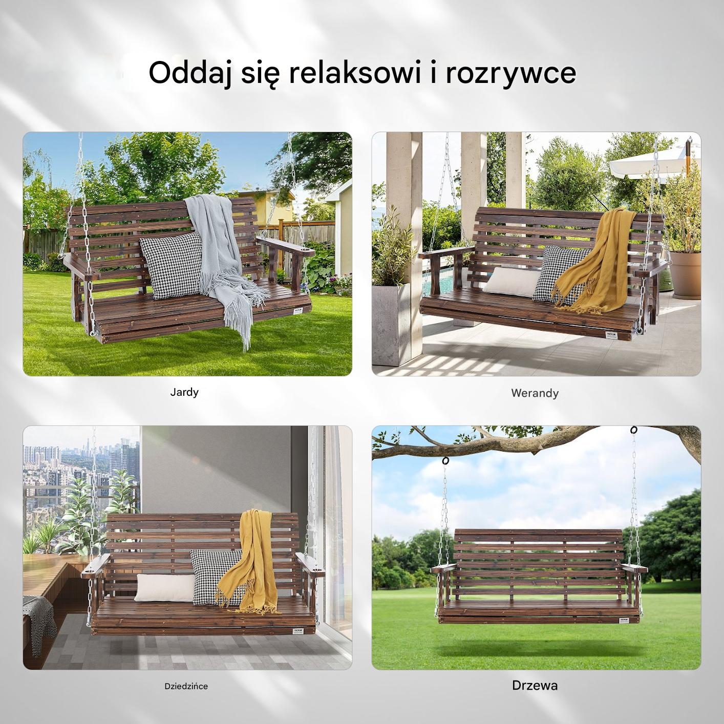 Класичний Дерев’яний сад саду з довжиною 137 см - це чудове рішення для людей, які цінують розслаблення на відкритому повітрі. Виготовлений з високоякісної сосни , що робить його надзвичайно міцним і стабільним вибором для саду, на терасі або веранді. Набір включає сильні сталеві ланцюги , які гарантують безпеку та довговічність.