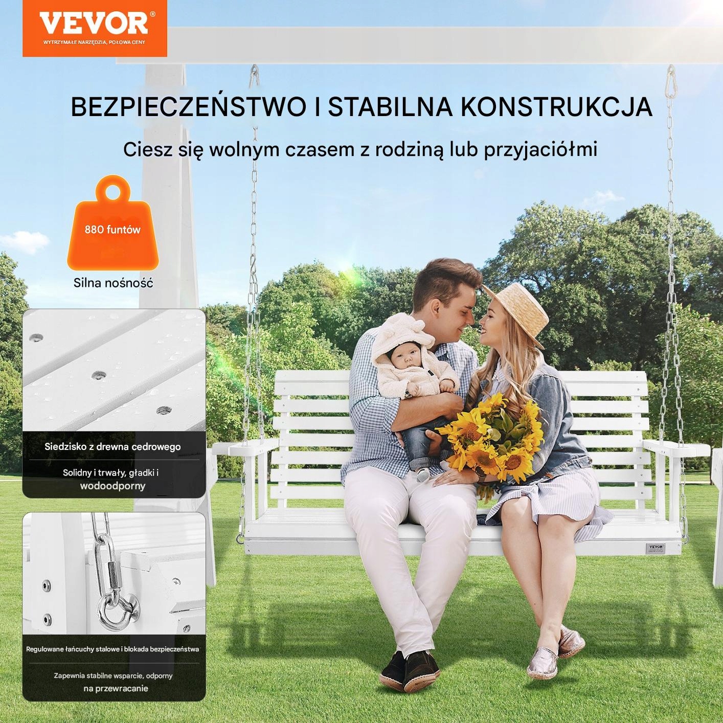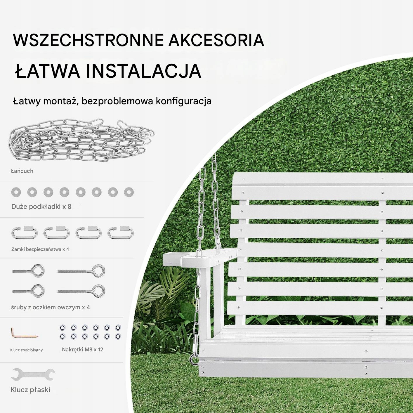 Класичний Дерев’яний сад саду з довжиною 170 см - це чудове рішення для людей, які цінують на відкритому повітрі. Виготовлений з високоякісної сосни , що робить його надзвичайно міцним і стабільним вибором для саду, на терасі або веранді. Набір включає сильні сталеві ланцюги , які гарантують безпеку та довговічність.