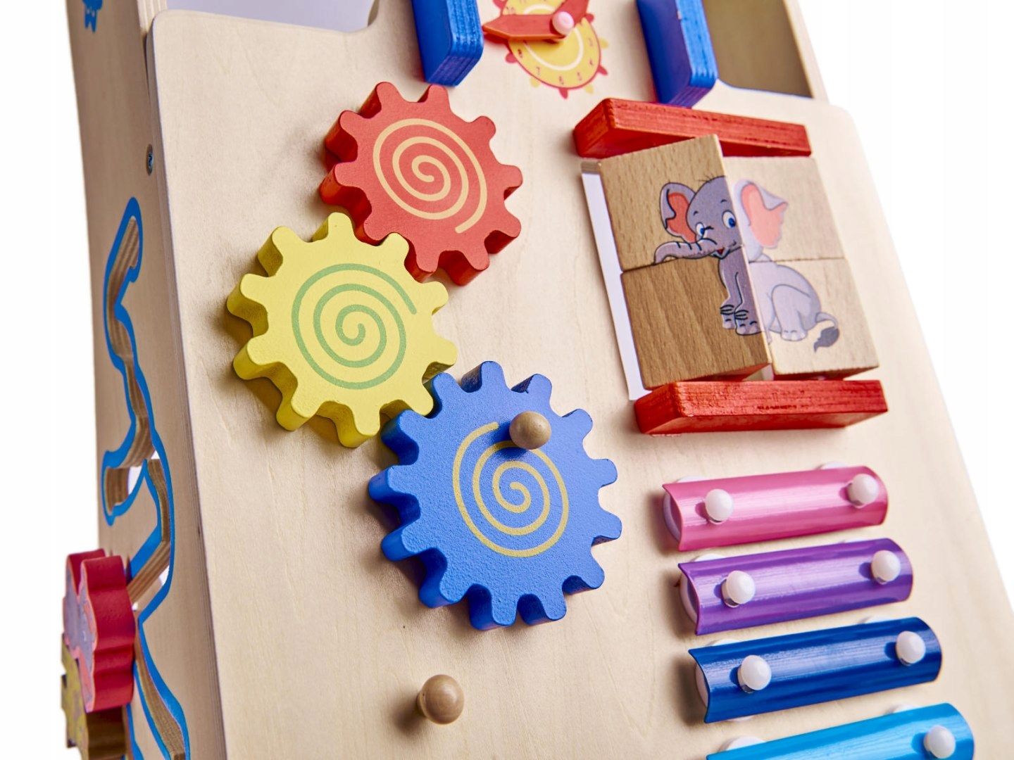 Це не просто ходунка! Творці переконалися, що він багато в чому забезпечував дітей розвагами. На передній частині штовхача існує маніпулятивна дошка наповнена елементами, які будуть радувати дітей: