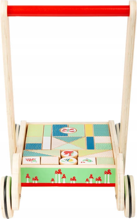 27 кубиків різних кольорів і форм тренують розуміння кольору та форми. Прогумовані колеса дозволяють котитися тихо та безпечно на землі.