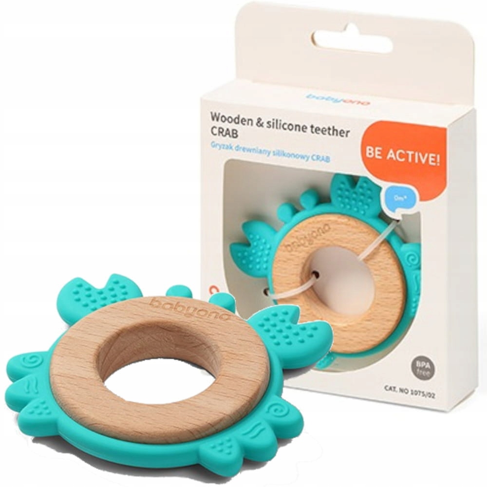 BabyOno Силіконовий дерев'яний прорізувач КРАБ для прорізування зубів