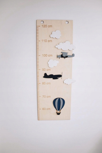 Таблиця з ростом із зображенням літака є прекрасним доповненням до дитячої кімнати для всіх, хто любить цю тему. Маленькі дослідники можуть спостерігати за польотом двох літаків і повітряної кулі за нашими мірками.