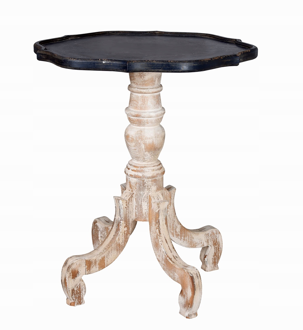 Це новий дерев'яний столик у стилі ретро, який через потертості виглядає як використаний предмет меблів із багатою історією. Тому він чудово впишеться в кімнати, оформлені в стилі шеббі-шик. Оригінальна колірна комбінація столу заснована на принципі контрасту, що надає йому привабливий вигляд. Завдяки цьому він виконує не тільки функціональну роль, але, перш за все, декоративну. Його зріст 76 см.