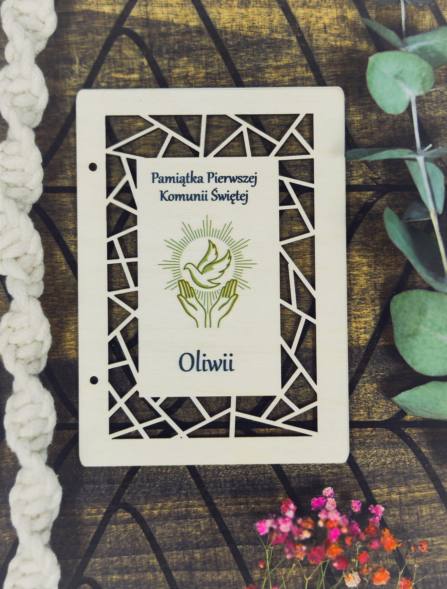 Індивідуальний дерев'яний сувенір на Перше Святе Причастя, який ідеально підходить як доповнення до подарунка або невеликого подарунка.
