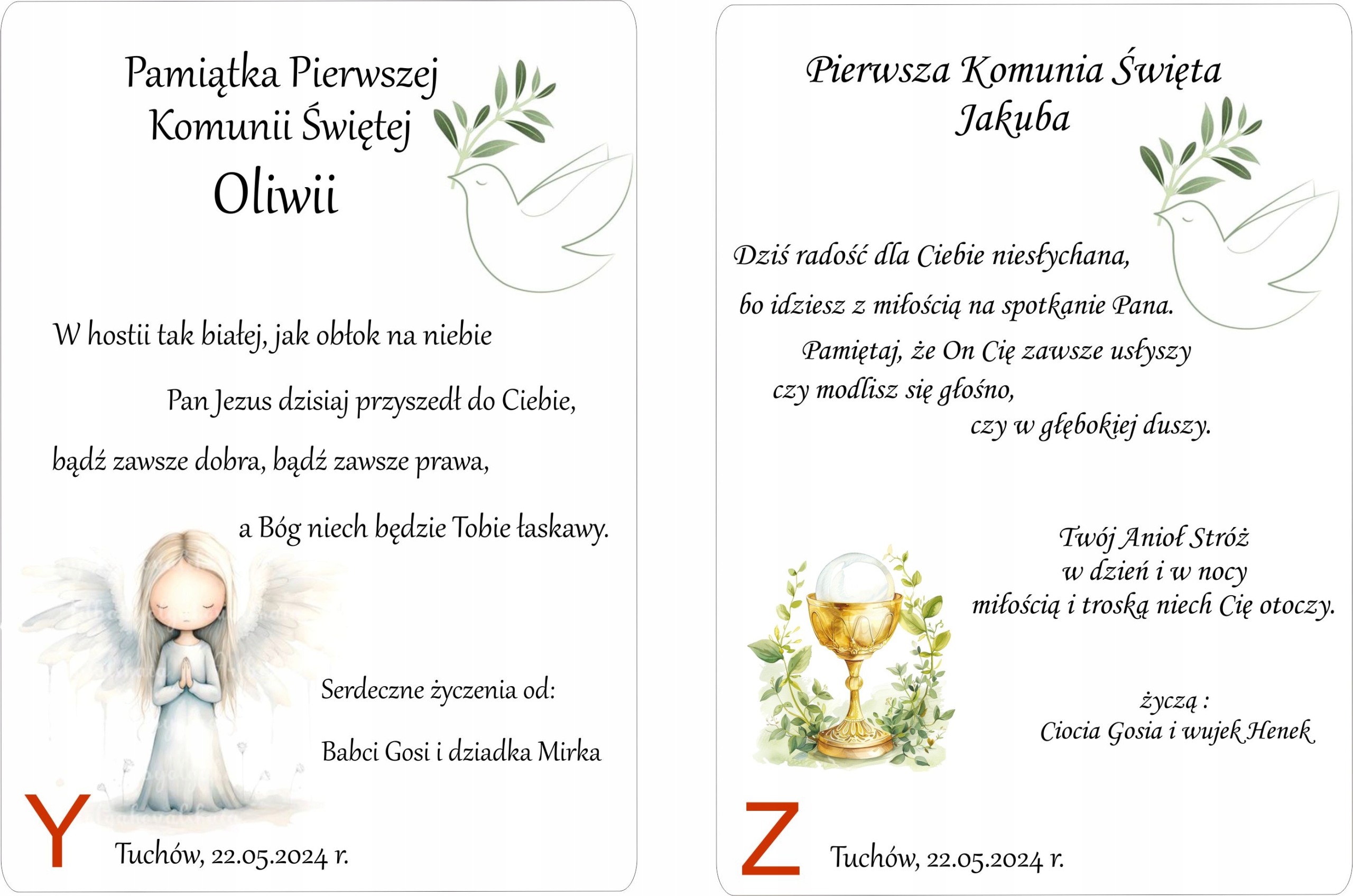 - Від кого побажання (наприклад, хрещена мати та родина/бабуся Бася.)