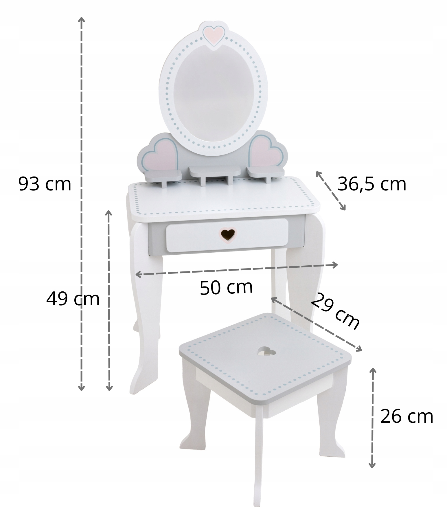 DREWNIANA TOALETKA dla dziewczynki dzieci DUŻA lustro kosmetyki suszarka