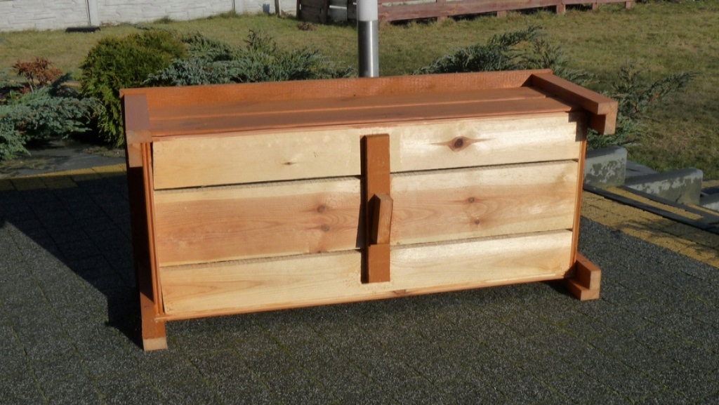 - посилене дно, виготовлене з дощок з товщиною 2,5 см , весь зібраний лише гвинт , розміри 41 року . Дно може бути встановлено на будь -якій висоті (наприклад, якщо рослина не потребує такої великої кількості ґрунту, або горщик повинен служити покриттям для конкретного внеску).