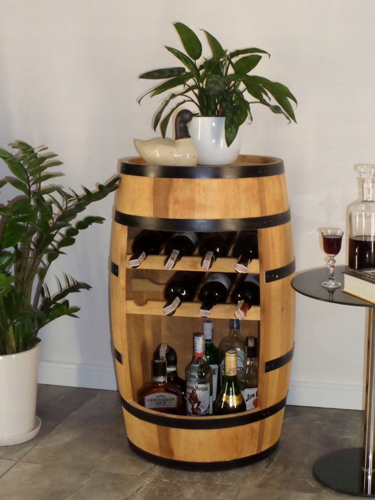 Бочка - барна стійка з винною полицею - це унікальний предмет меблів, що забезпечує неповторну прикрасу інтер'єру в поєднанні з практичним використанням. Кожна бочка виготовляється вручну починаючи від розрізання дощок на пилорамі і закінчуючи ручним зняттям обручів, які надають бочці унікальну опуклу форму. Бар вміщує приблизно 30 пляшок (залежно від форми та розміру).