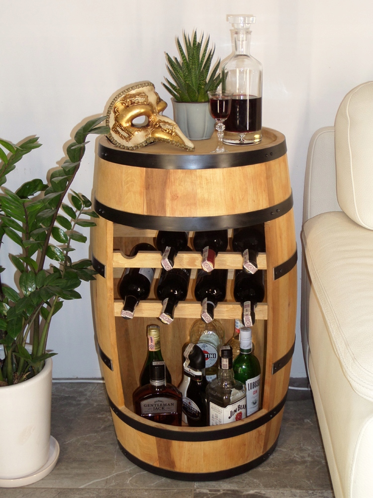 Бочка - барна стійка з винною полицею - це унікальний предмет меблів, що забезпечує неповторну прикрасу інтер'єру в поєднанні з практичним використанням. Кожна бочка виготовляється вручну починаючи від розрізання дощок на пилорамі і закінчуючи ручним зняттям обручів, які надають бочці унікальну опуклу форму. Бар вміщує приблизно 30 пляшок (залежно від форми та розміру).