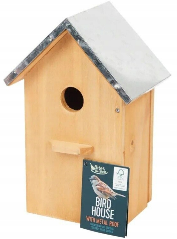 Гарний сосновий ящик для птахів . Захищений просоченням. Подовжений дах захищає від дощу та снігу. Діаметр вхідного отвору 30 мм. Гніздовий ящик відмінно підійде для таких птахів як: синиця велика, синиця хохлата, синиця блакитна, синиця кедрова, синичка, мухоловка строката, горіхвістка та горобець хатній. Завдяки тому, що шпаківня має дверцята, що відкриваються, її можна легко почистити.