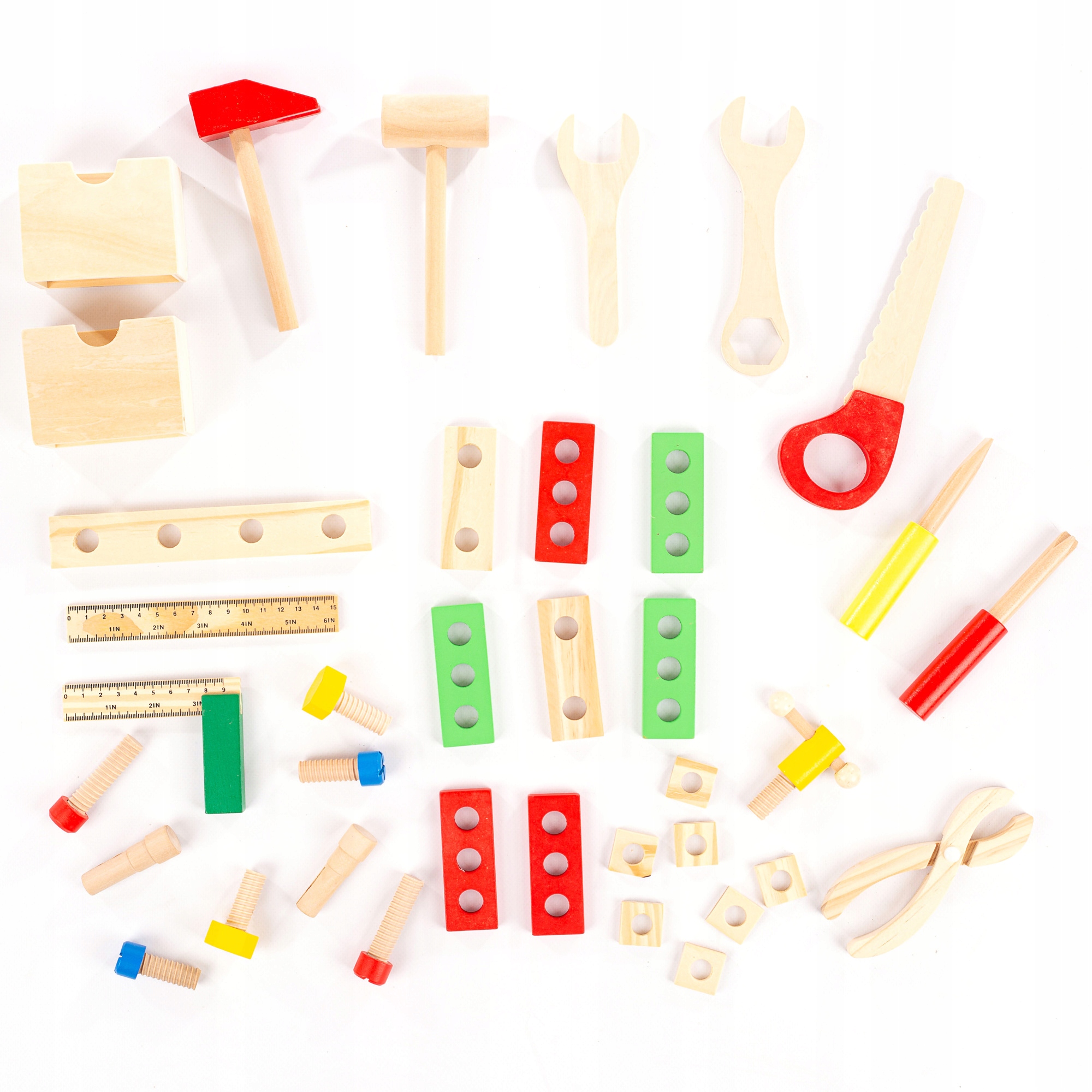 З 38 предметами та різними інструментами, наприклад молотком, плоскогубці, пилка, викрутка та гайкові ключі... Цей набір обов'язково сподобається вашій малечі. Є так багато різних способів з’єднати гайки та болти в коробці. Чудовий спосіб покращити координацію рук і очей і розвинути дрібну моторику.
