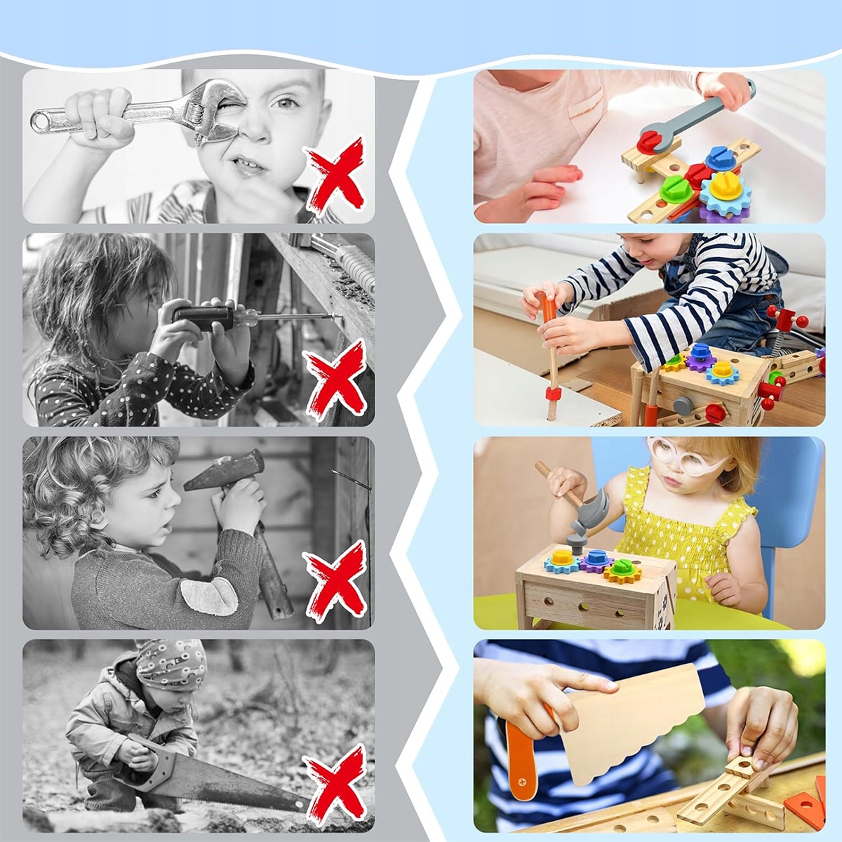 ⭕Ящик для інструментів для дітей від 3 років, Монтессорі, дерев'яна іграшка для дітей, інструменти, верстак, розвиваючі ігри, набір інструментів, гвинт, молоток, гра, ігри, подарунки для хлопчиків і дівчаток від 3 років