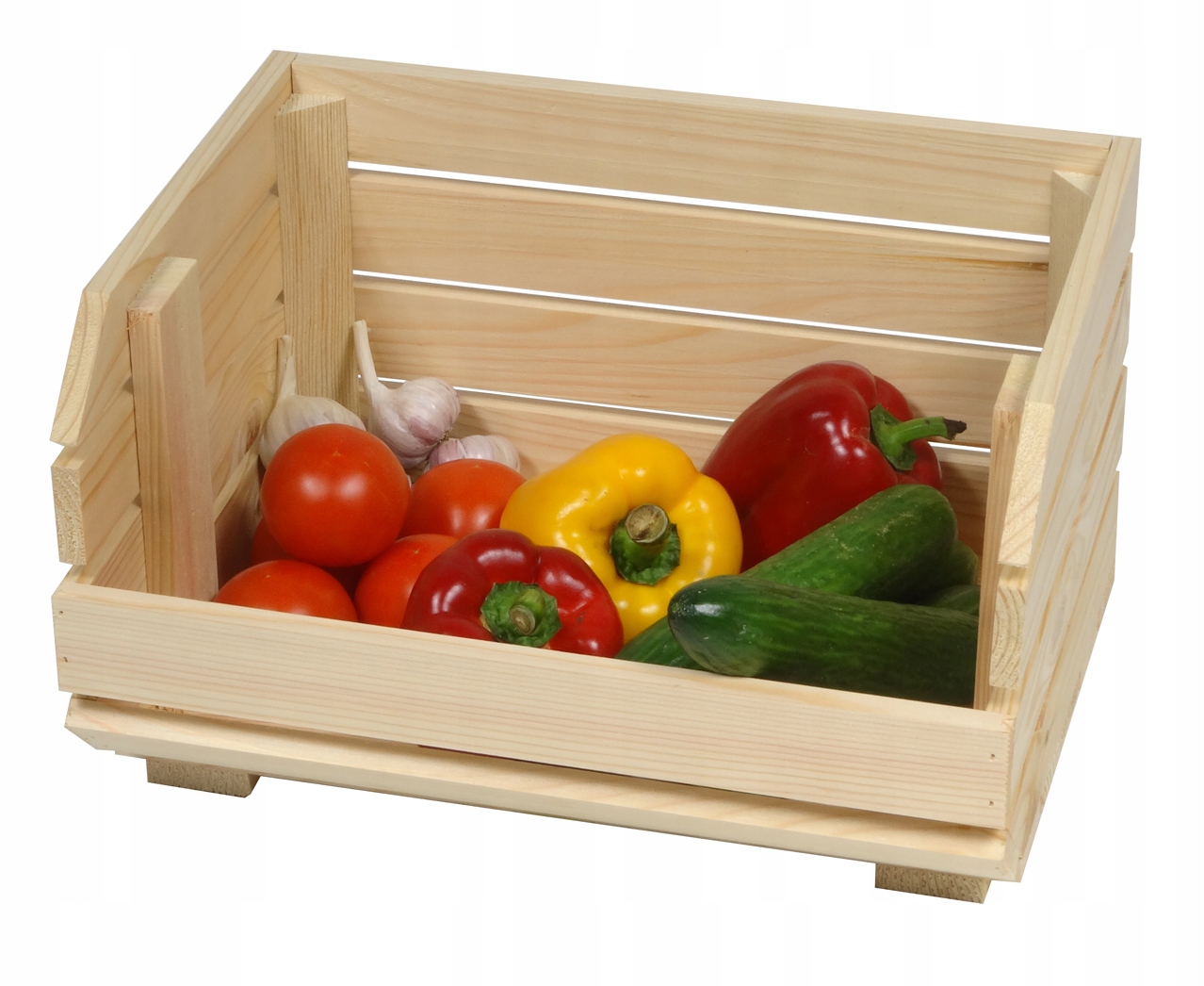 Полиця для ящиків для фруктів і овочів вирізняється своєю непідвладною часу формою, яка підійде до будь-якого інтер'єру. Овоч буде чудово виглядати в будинках і квартирах в скандинавському, класичному і сільському стилях. Натуральна сосна також впишеться в інтер'єр модерн. При необхідності ви можете прикрасити полицю або пофарбувати її спеціальною фарбою для дерева.