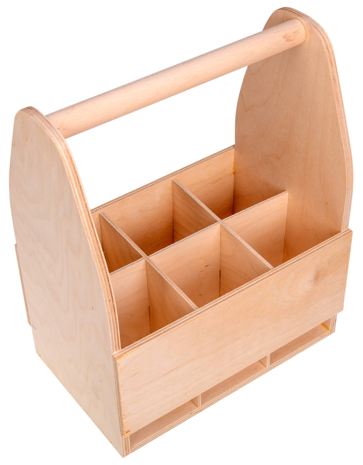 Здивуйте своїх друзів елегантною дерев'яною ємністю для 6 сортів пива. Збираєшся на шашлик? Вас запросили на вечірку? Шукаєте подарунок? Замініть поліетиленовий пакет цією гарною переноскою для пива тощо. Сама переноска може бути подарунком для господарів. Прикрашайте, персоналізуйте.