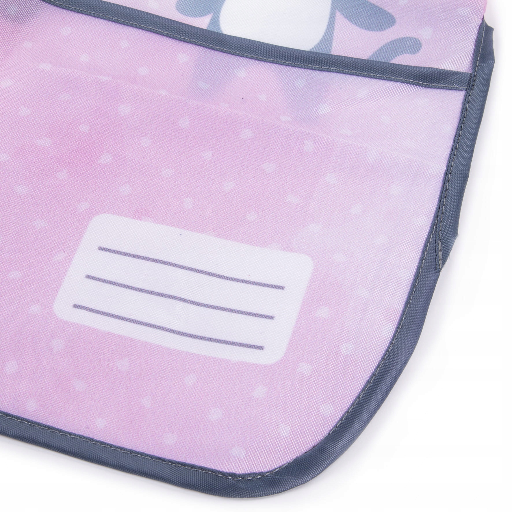 Фартушок для творчості в пастельно-рожевому кольорі з милою пандою, зайчиком і кошеням.