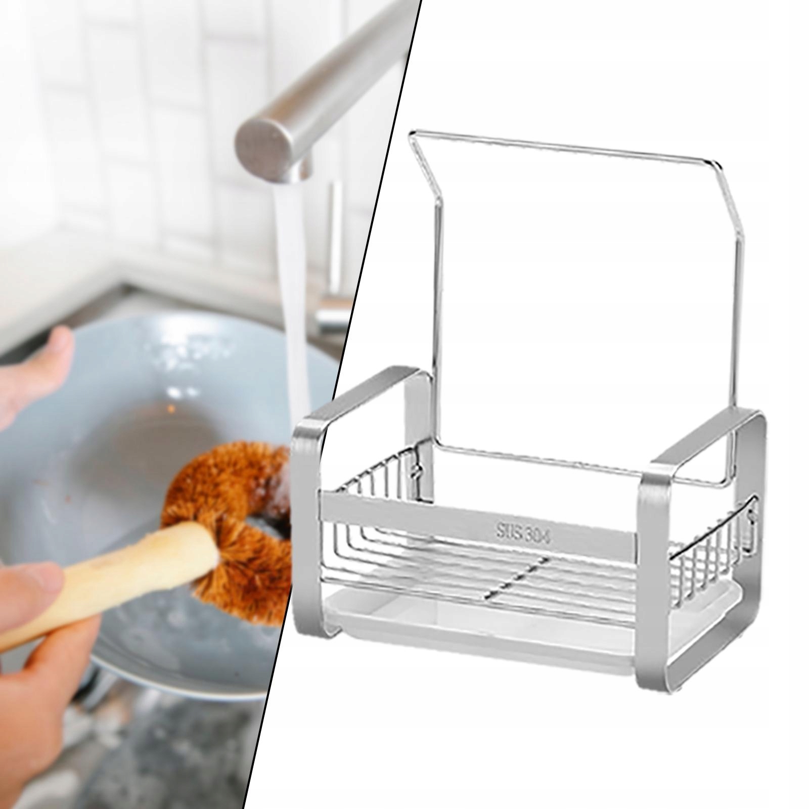 Висока якість: Губковий тримач для кухонної раковини виготовлений з міцної та міцної нержавіючої сталі, міцної.