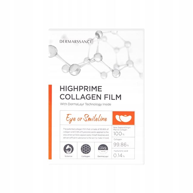 Dermarssance Highprime Collagen Eye - інноваційна ексклюзивна маска з колагеном у формі пластівців. Цей препарат неодмінно зацікавить людей, які шукають якісні засоби для догляду за шкірою навколо очей або носових складок. Він містить аж 97% натуральних інгредієнтів, у тому числі колаген.