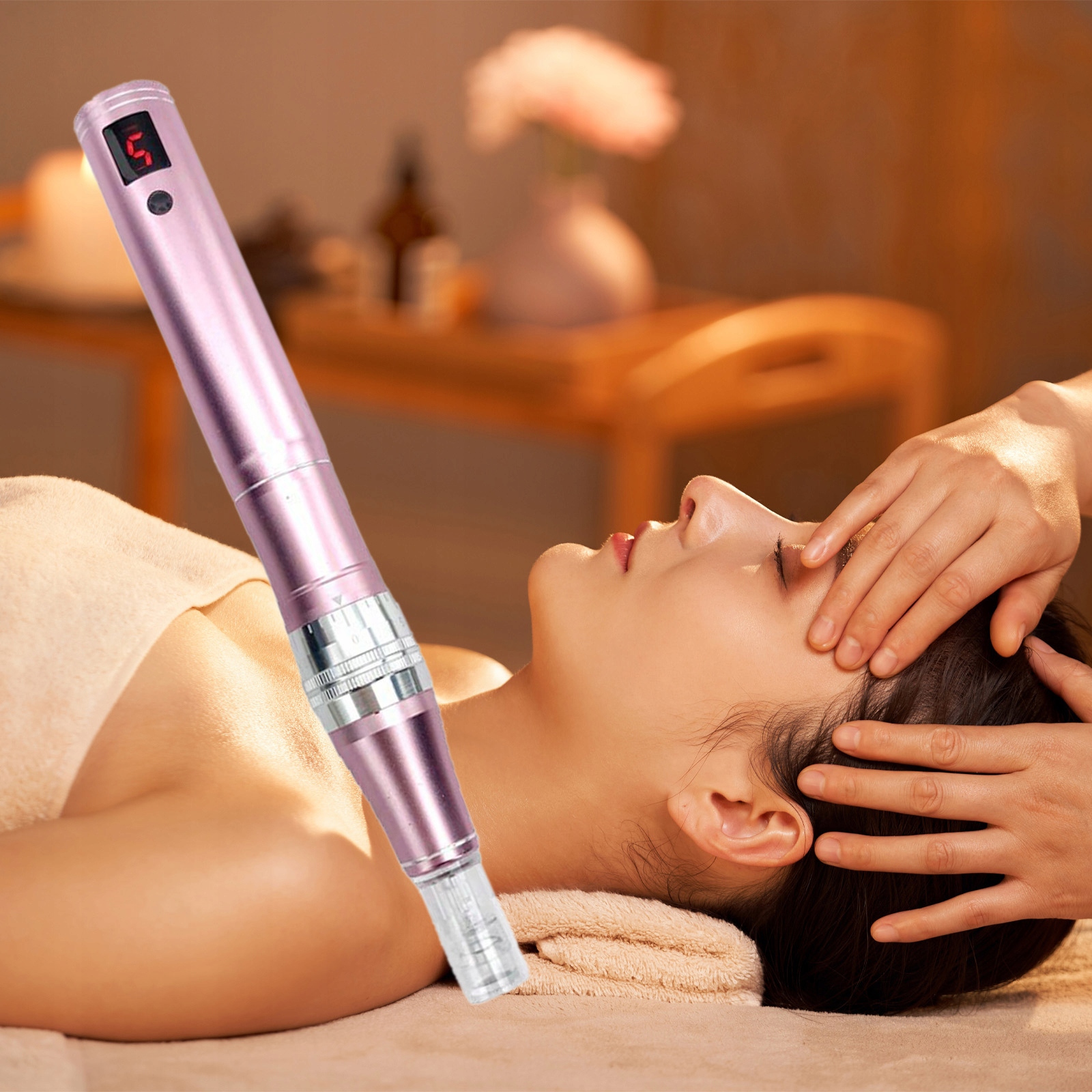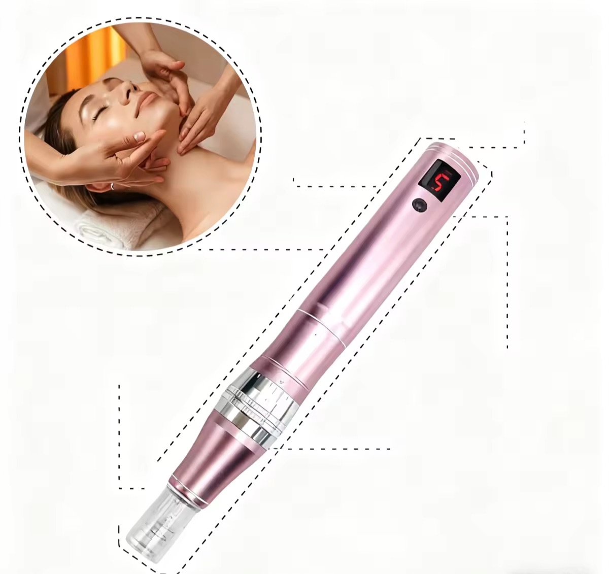 ✔ Цей останній пристрій використовує вертикальне проникнення та кілька мікроголок для проколювання шкіри.