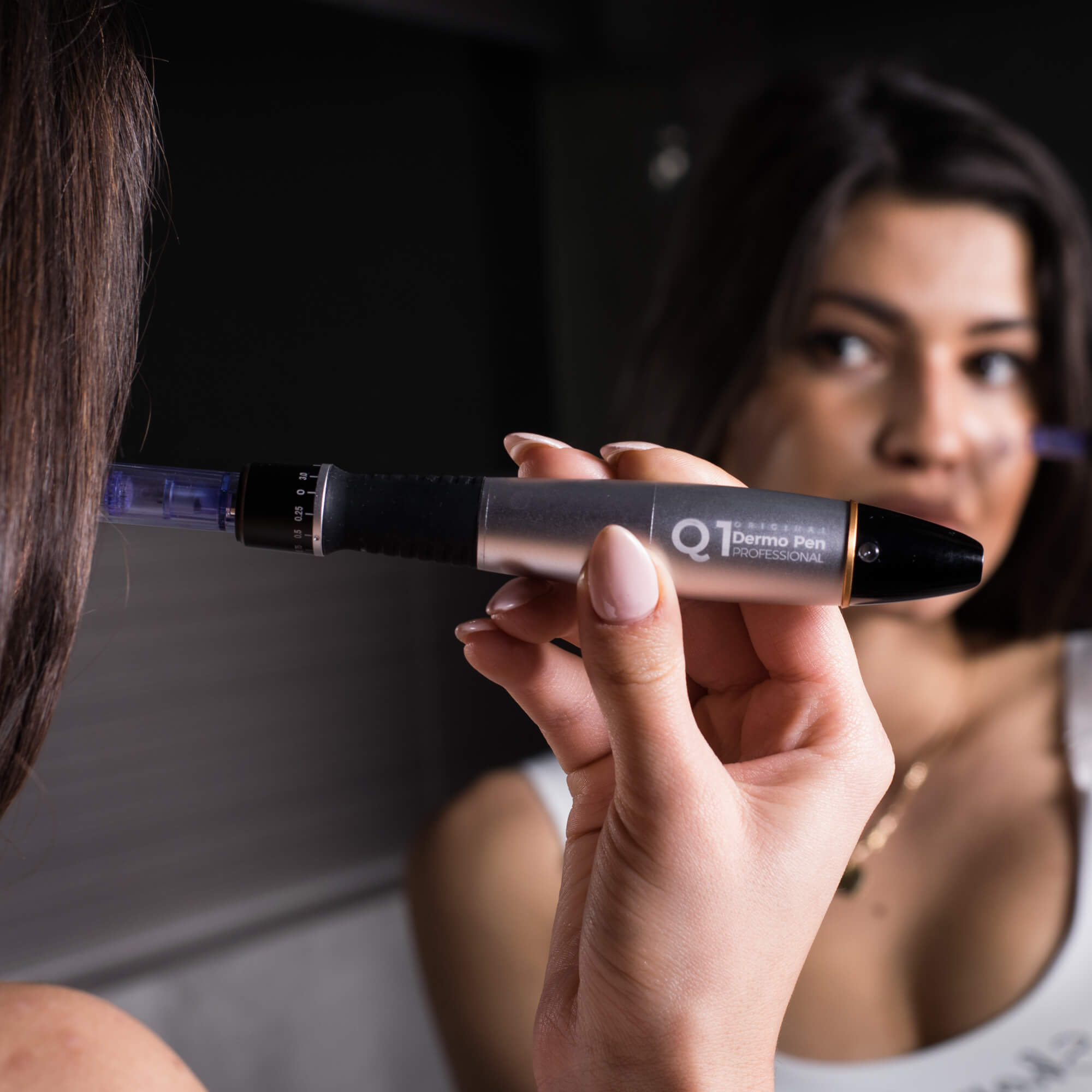 Завдяки інноваційній електричній системі мікроголок, яка використовується в DERMO PEN Q1, ми можемо виконувати процедури, які дають вражаючі результати, не виключаючи себе з повсякденного життя. Великою перевагою процедури є її малоінвазивність, що забезпечує повну безпеку.