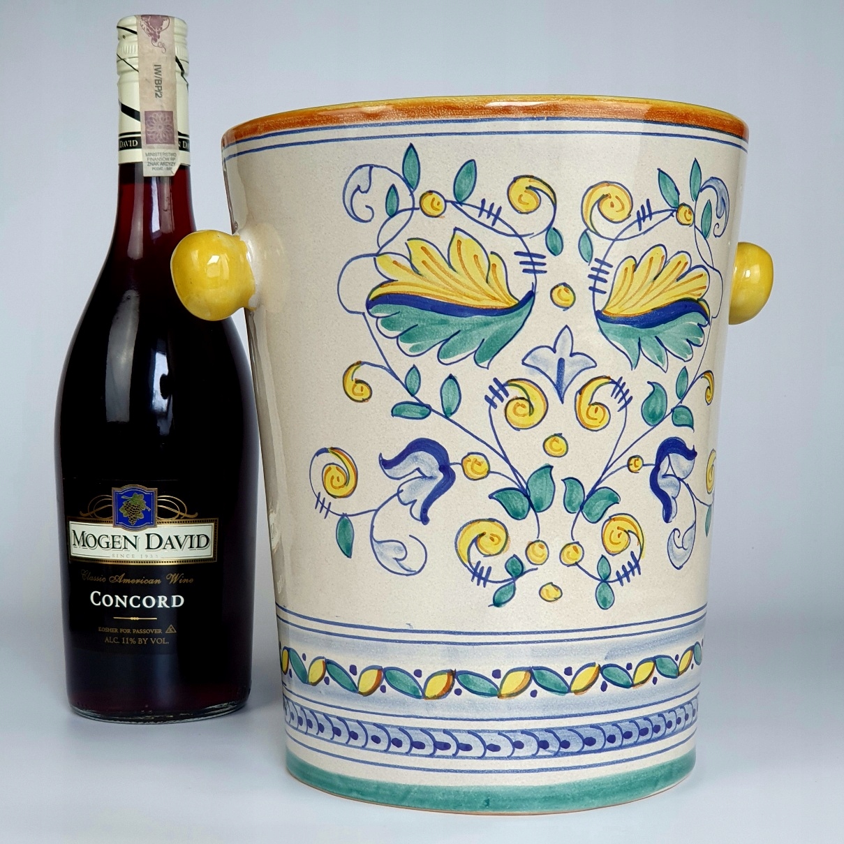 Охолоджувач для пляшок вина, розписаний вручну.
