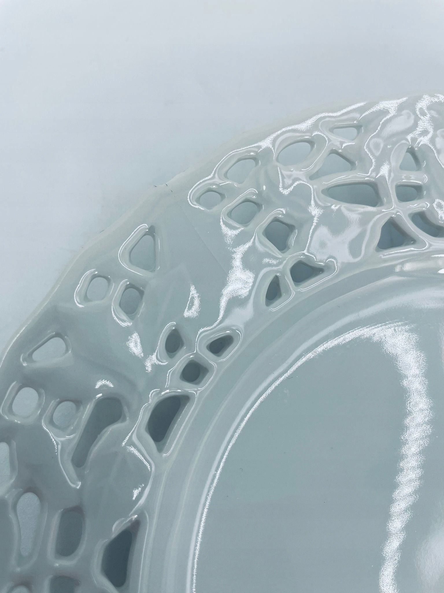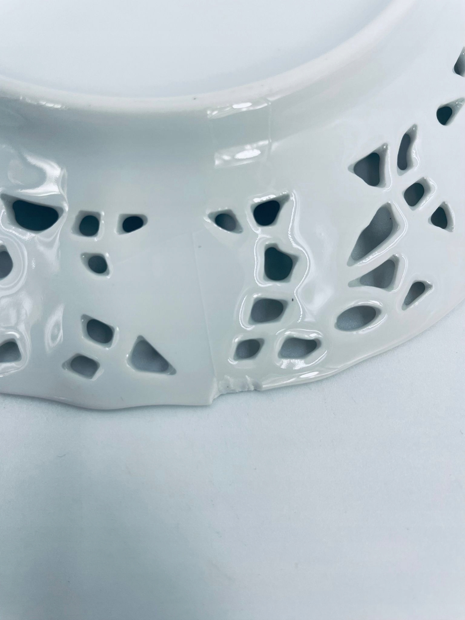 Десертна тарілка Mitterteich Bavaria, виготовлена з білої порцеляни найвищої якості. Для пластини характерний ажурний, рельєфний малюнок по краю. Має тріщину з невеликим пошкодженням.