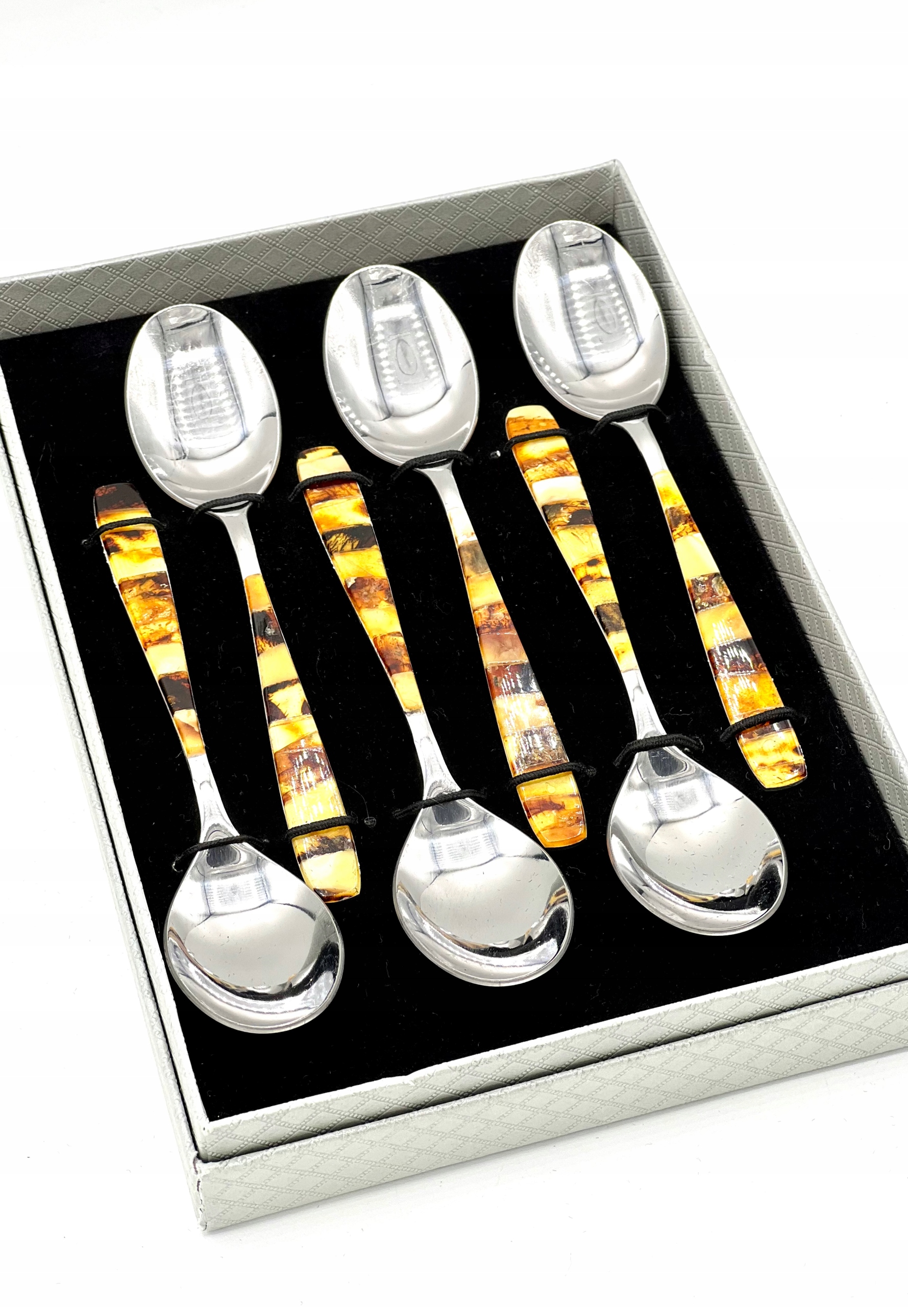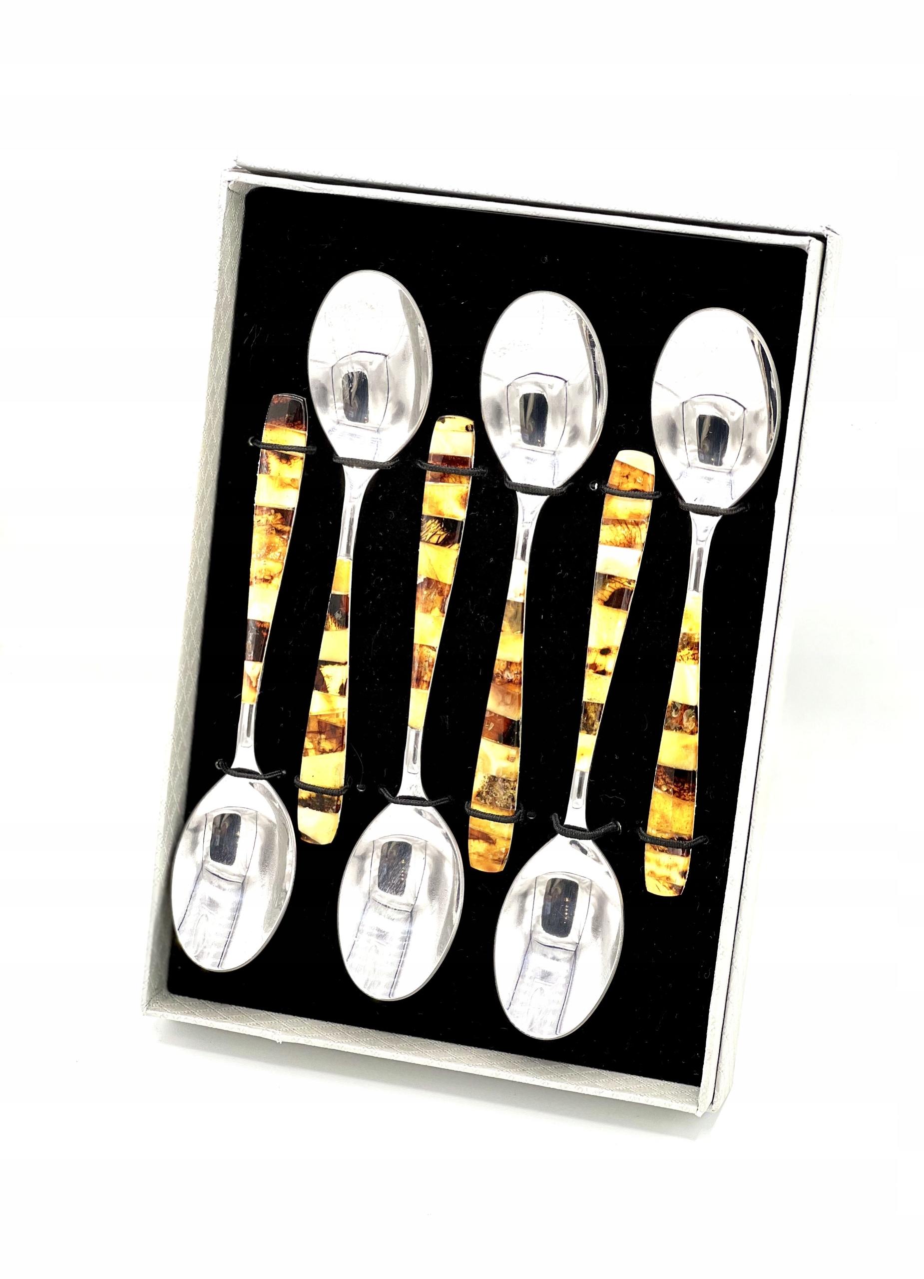 ПРИМІТКА: Ложки не можна класти в посудомийну машину, їх потрібно мити вручну, уникаючи намочування бурштинової мозаїки.