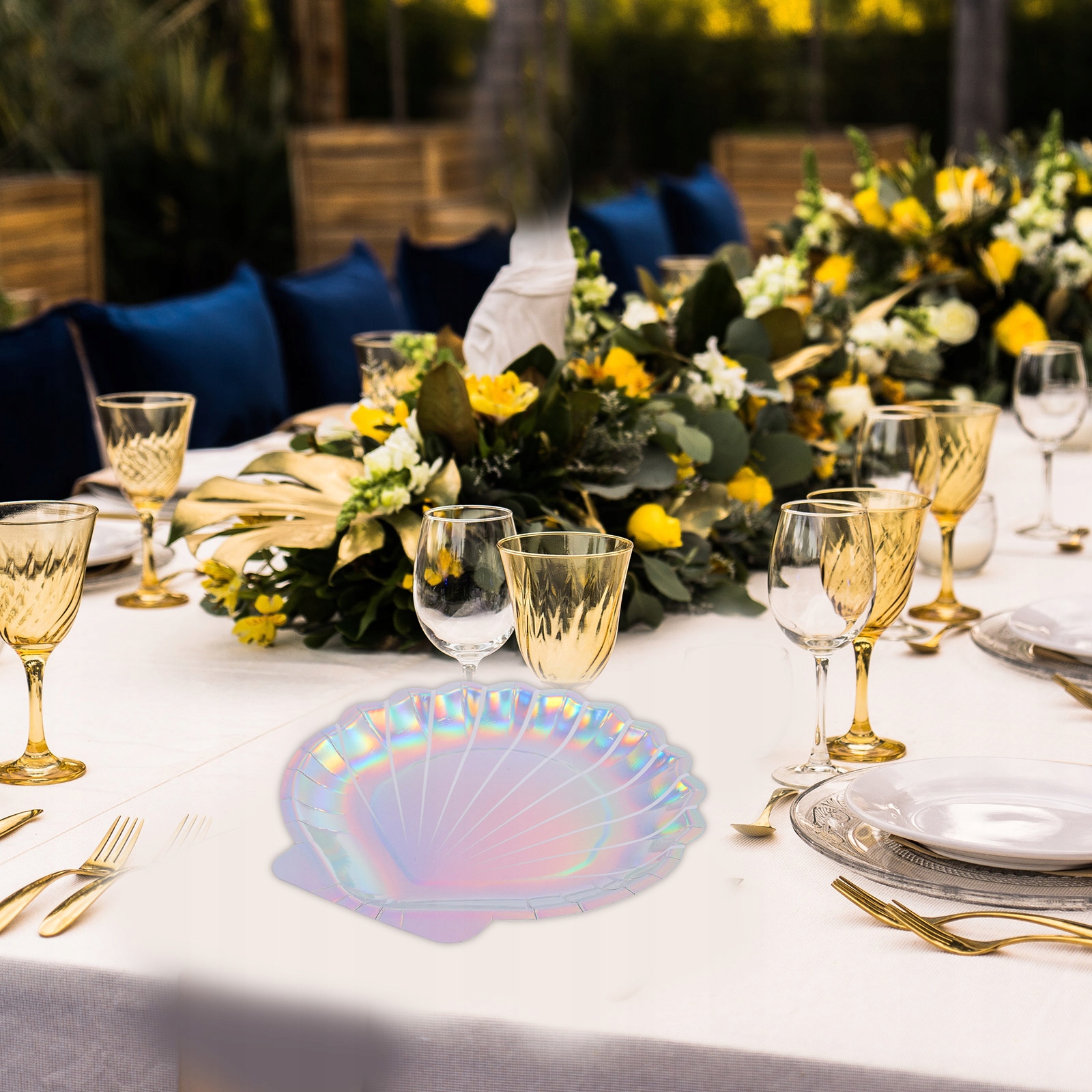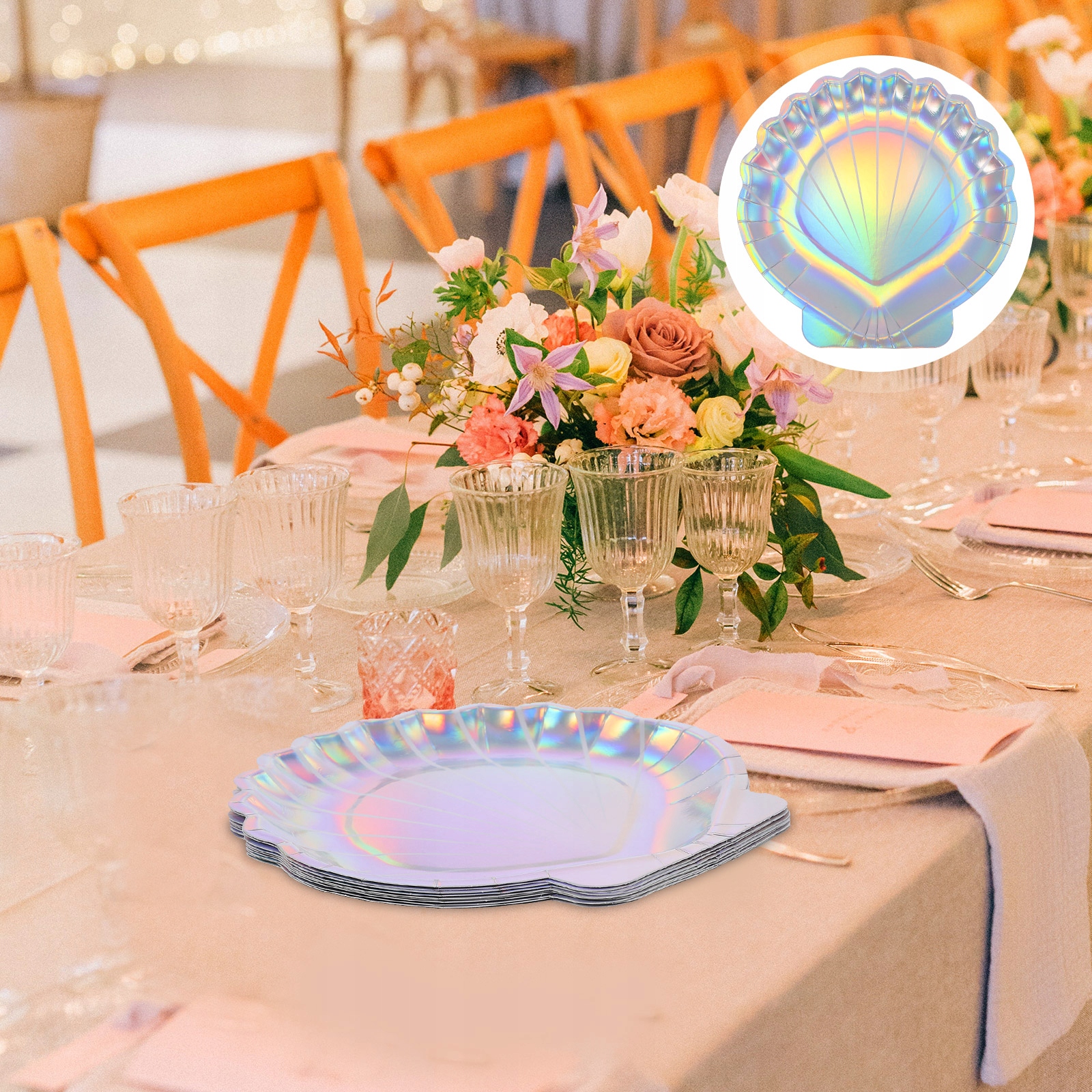 - Декоративні паперові тарілки з мушлями для вечірок ідеально підходять для додання елегантності вечіркам на тему русалок, весіллям, дням народженням, дитячим святам, підводним подіям, пікнікам, фуршетам і святковим прикрасам, таким як День подяки.