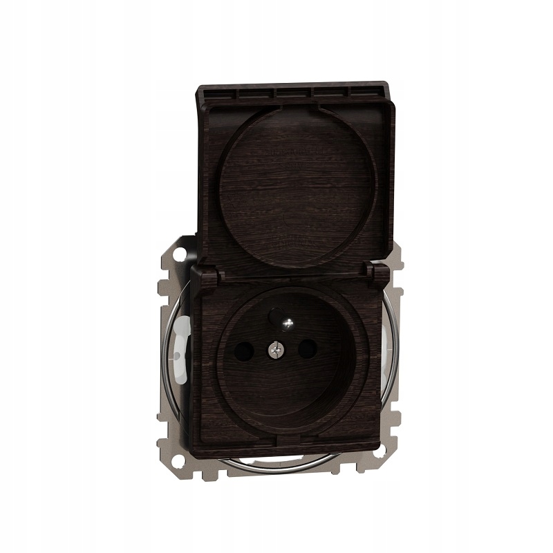 Силова розетка намалювала обробку поверхні у Венге і має такі розміри: ширина 73 мм, висота 73 мм, глибина 50 мм, виступаюча глибина 29 мм. Довжина ізоляції, вилученої з кабелю, становить 13 мм. Розетка характеризується захистом IP44 та діапазоном потужності 3680 Вт. Термопластичний матеріал із підвищеною стійкістю до УФ використовувався для виробництва розетки. Продукт встановлений прихованим і має гвинтові затискачі.