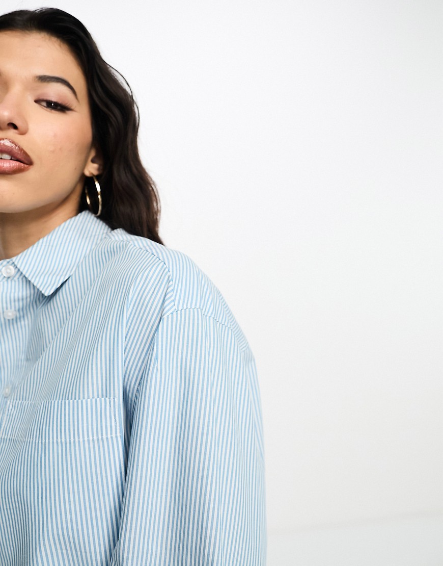 DESIGNEX Синя оксфордська сорочка в білу смужку M