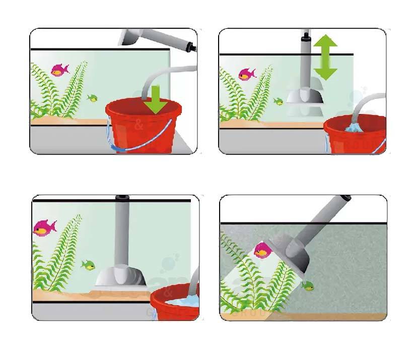 Багатофункціональні очищувачі для акваріумів у 3 розмірах: GC-S, GC-M і GC-L ідеально підходять для очищення будь-якого типу акваріума. На кінці трубки є лезо, яке ідеально підходить для очищення вікон від водоростей та іншого бруду. Gravel Cleaner оснащений системою «Легкий старт». Просто помістіть трубку мулоочисника у воду та перемістіть її вгору та вниз швидкими рухами кілька разів. Вода всмоктується автоматично і почне надходити в посудину, яка знаходиться під вихідним отвором шланга.Пластикова сітка всередині труби відстійника захищає від всмоктування гравію. Пристрій надзвичайно практичний і абсолютно безпечний для риб.